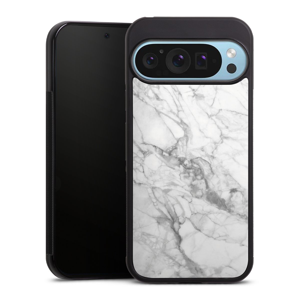 The contrast between the matte black TPU on the sides and the glossy glass surface not only makes the Gallery Case a fest for the eyes, but also a real treat for the hands: The glass gives the phone a pleasantly smooth back and the soft silicone edge provides the necessary grip.