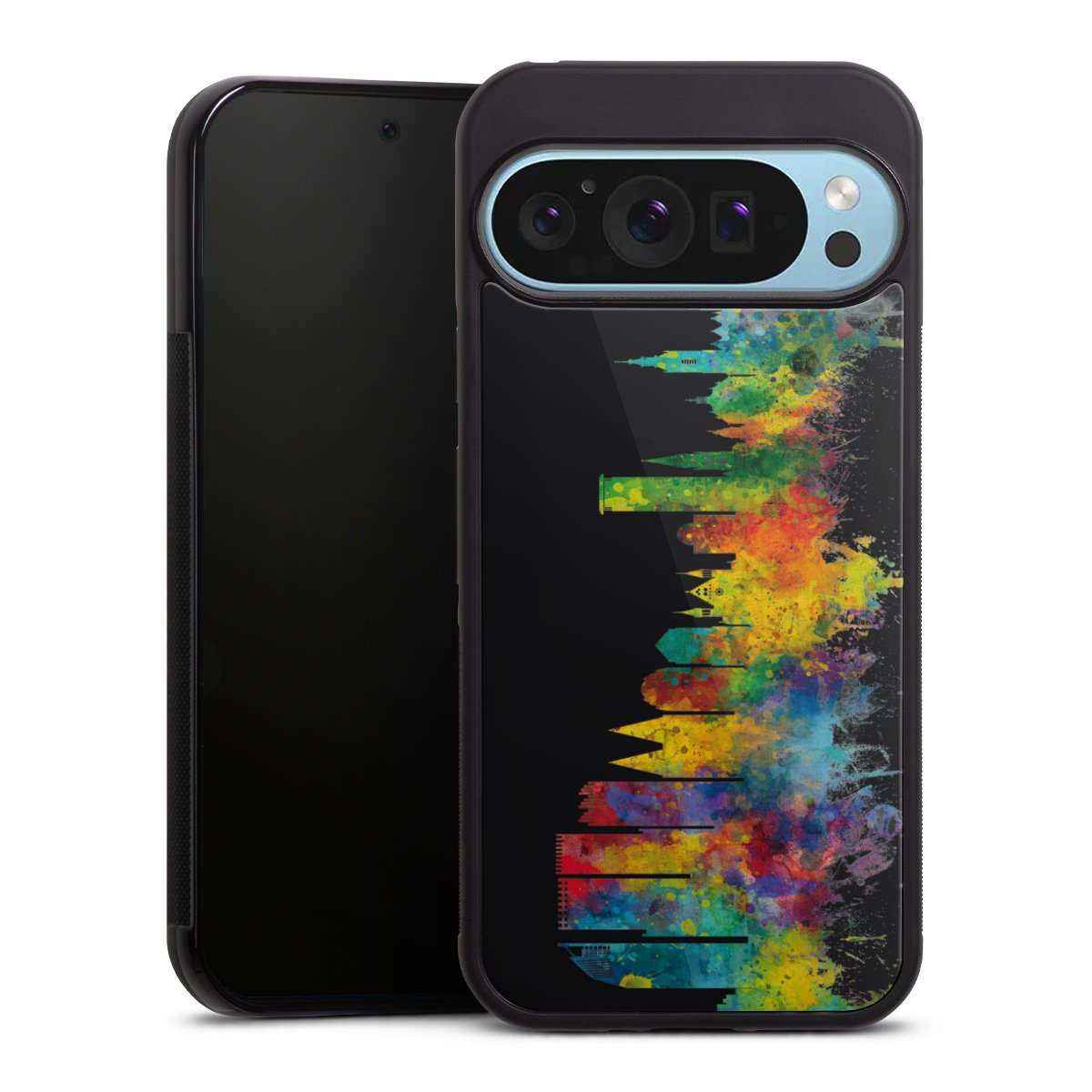 We print your design on the back of the glass inlay and then connect it firmly to the silicone case ,so that nothing sticks out and everything looks like it was cast from one piece. In addition, the sturdy glass element is protected from scratches by an additional coating and ensures a slight reflection on the shiny print image.