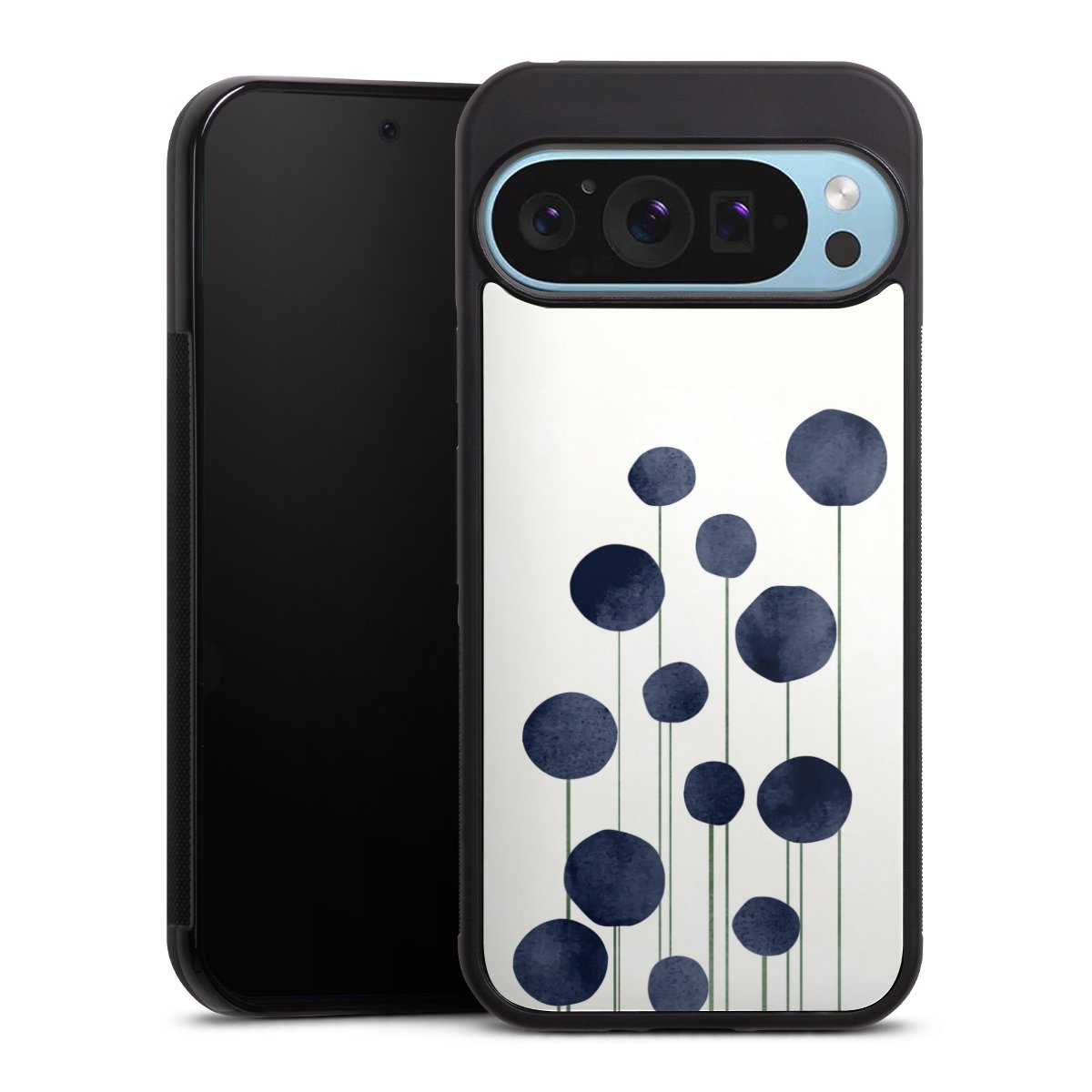 We print your design on the back of the glass inlay and then connect it firmly to the silicone case ,so that nothing sticks out and everything looks like it was cast from one piece. In addition, the sturdy glass element is protected from scratches by an additional coating and ensures a slight reflection on the shiny print image.
