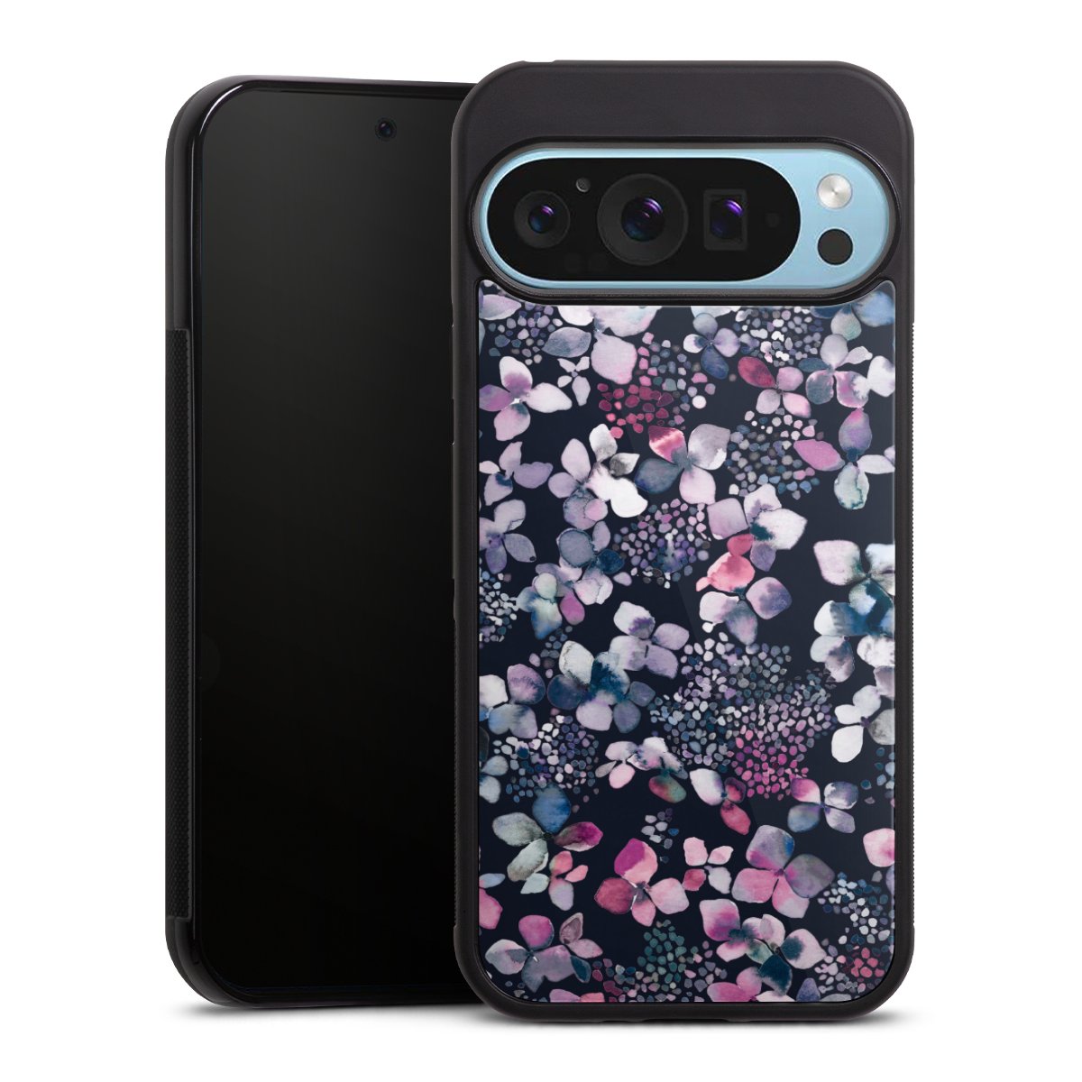 We print your design on the back of the glass inlay and then connect it firmly to the silicone case ,so that nothing sticks out and everything looks like it was cast from one piece. In addition, the sturdy glass element is protected from scratches by an additional coating and ensures a slight reflection on the shiny print image.