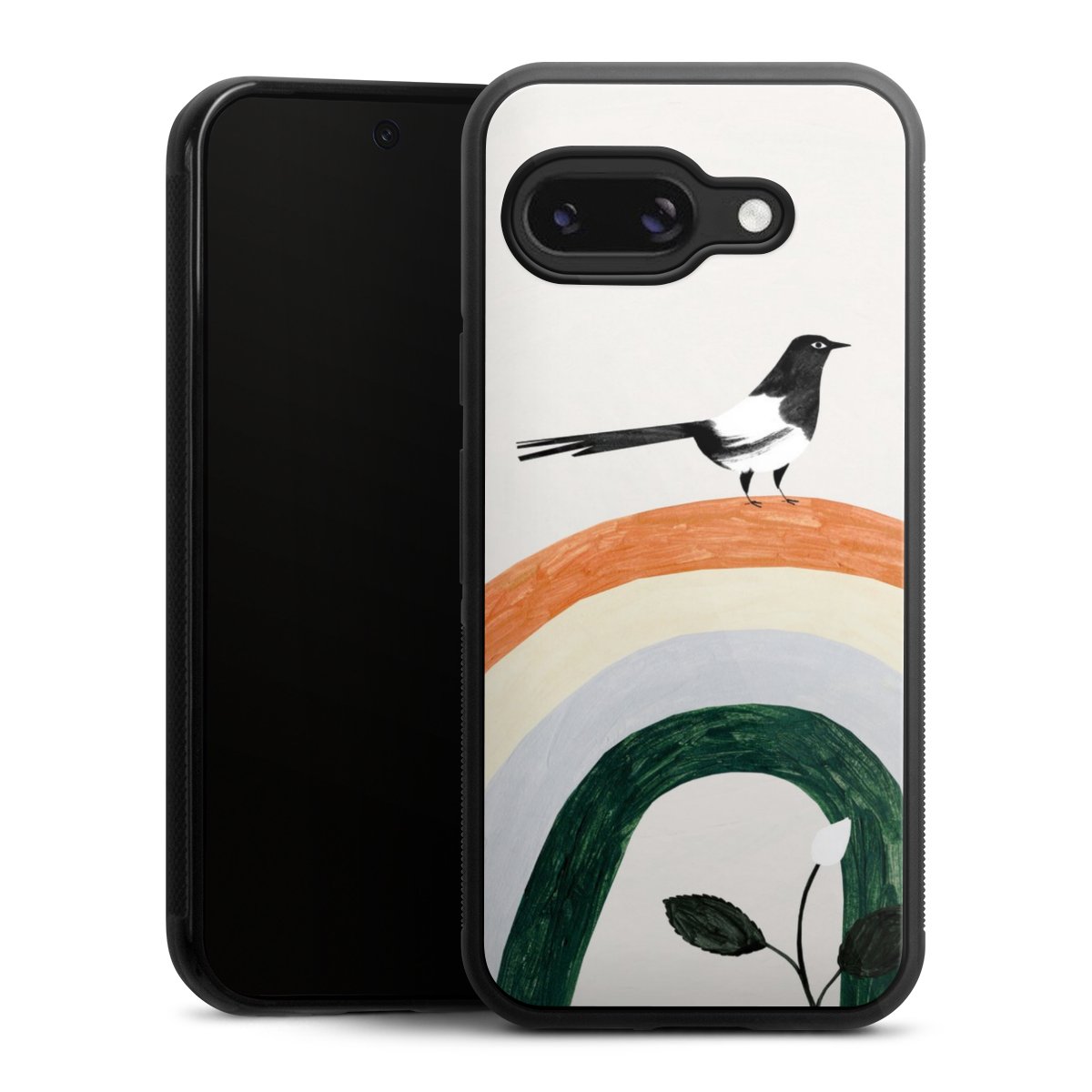 We print your design on the back of the glass inlay and then connect it firmly to the silicone case ,so that nothing sticks out and everything looks like it was cast from one piece. In addition, the sturdy glass element is protected from scratches by an additional coating and ensures a slight reflection on the shiny print image.