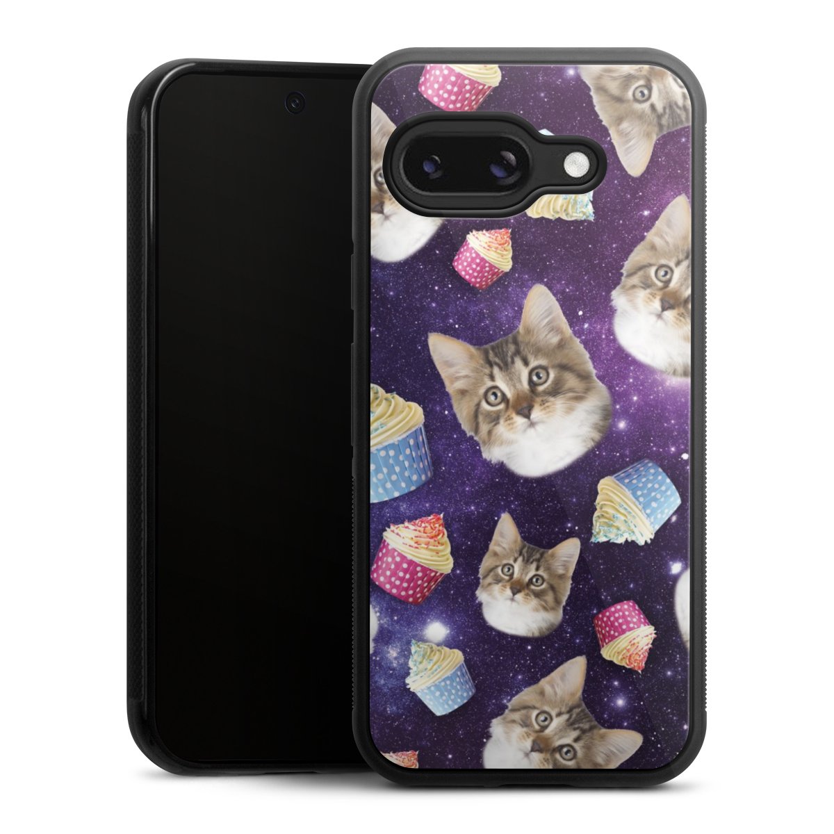 We print your design on the back of the glass inlay and then connect it firmly to the silicone case ,so that nothing sticks out and everything looks like it was cast from one piece. In addition, the sturdy glass element is protected from scratches by an additional coating and ensures a slight reflection on the shiny print image.