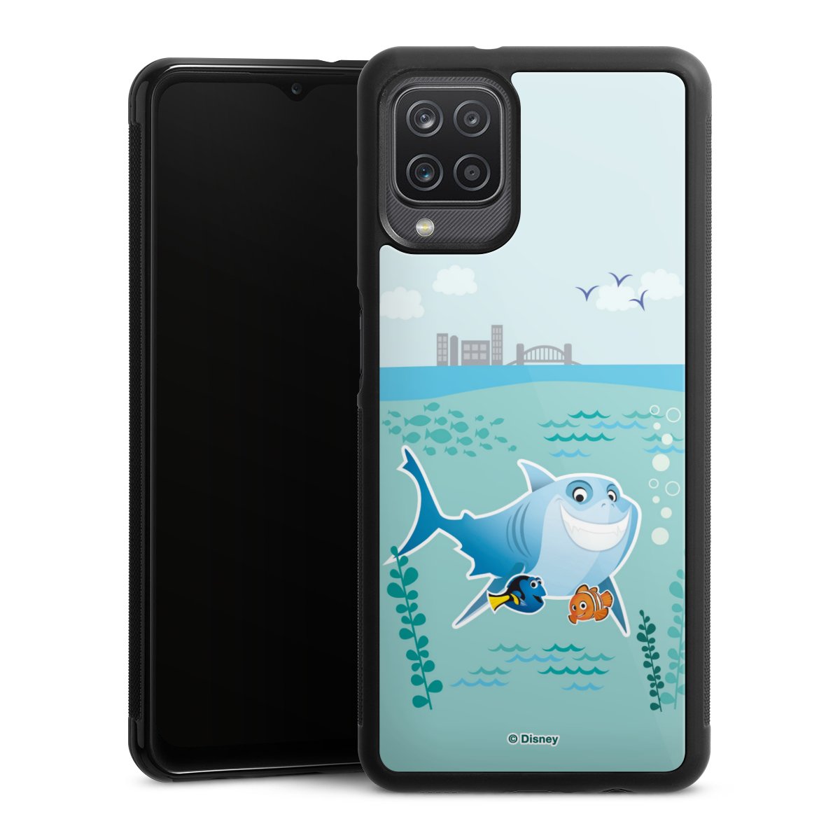 We print your design on the back of the glass inlay and then connect it firmly to the silicone case ,so that nothing sticks out and everything looks like it was cast from one piece. In addition, the sturdy glass element is protected from scratches by an additional coating and ensures a slight reflection on the shiny print image.