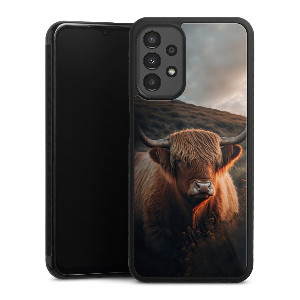We print your design on the back of the glass inlay and then connect it firmly to the silicone case ,so that nothing sticks out and everything looks like it was cast from one piece. In addition, the sturdy glass element is protected from scratches by an additional coating and ensures a slight reflection on the shiny print image.