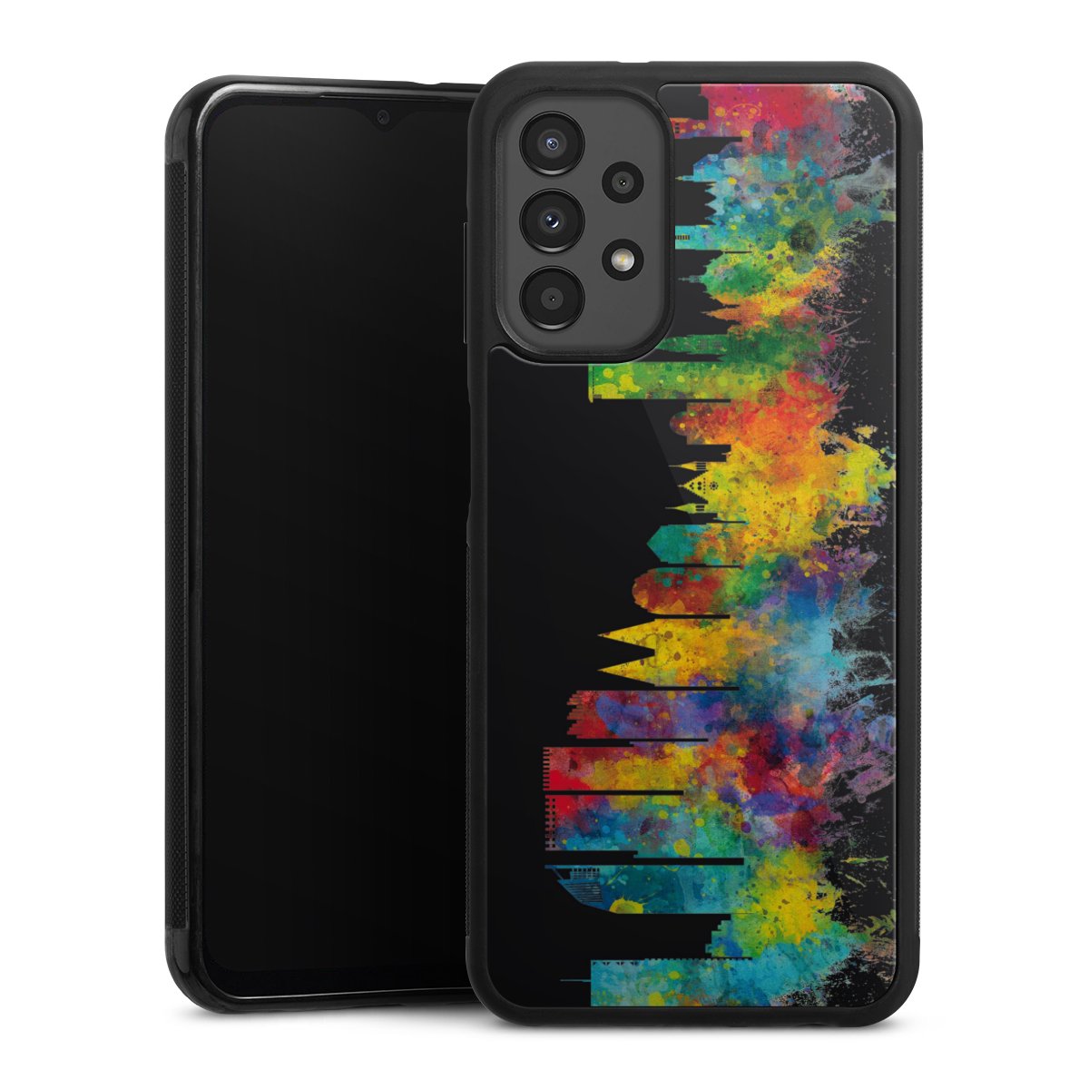We print your design on the back of the glass inlay and then connect it firmly to the silicone case ,so that nothing sticks out and everything looks like it was cast from one piece. In addition, the sturdy glass element is protected from scratches by an additional coating and ensures a slight reflection on the shiny print image.