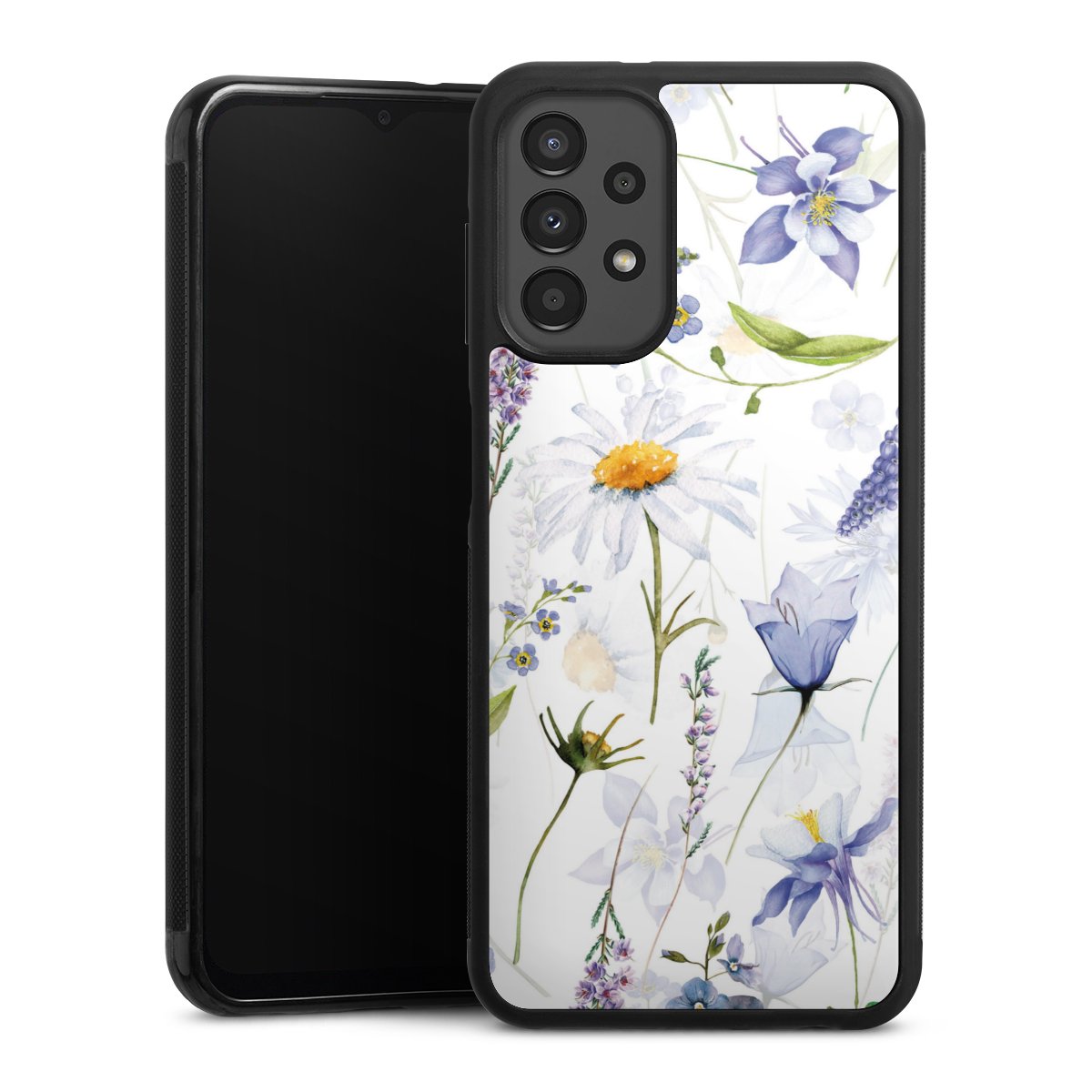We print your design on the back of the glass inlay and then connect it firmly to the silicone case ,so that nothing sticks out and everything looks like it was cast from one piece. In addition, the sturdy glass element is protected from scratches by an additional coating and ensures a slight reflection on the shiny print image.