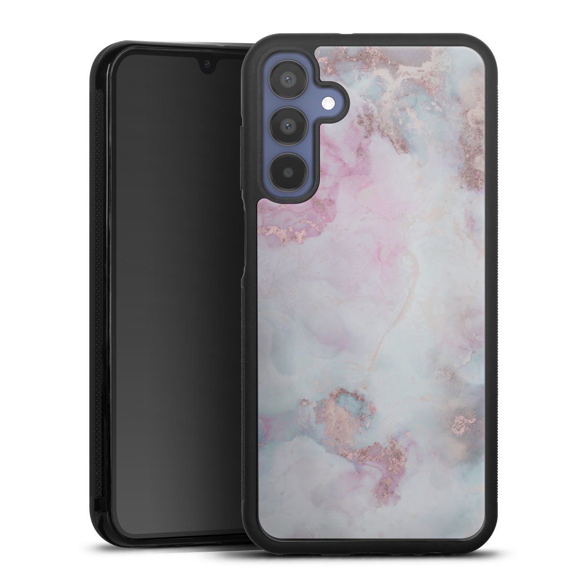 The contrast between the matte black TPU on the sides and the glossy glass surface not only makes the Gallery Case a fest for the eyes, but also a real treat for the hands: The glass gives the phone a pleasantly smooth back and the soft silicone edge provides the necessary grip.