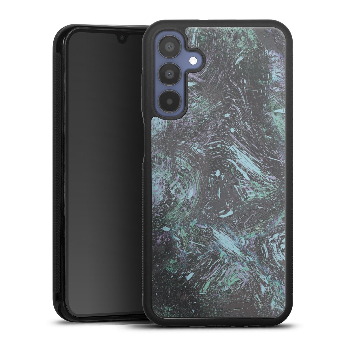We print your design on the back of the glass inlay and then connect it firmly to the silicone case ,so that nothing sticks out and everything looks like it was cast from one piece. In addition, the sturdy glass element is protected from scratches by an additional coating and ensures a slight reflection on the shiny print image.