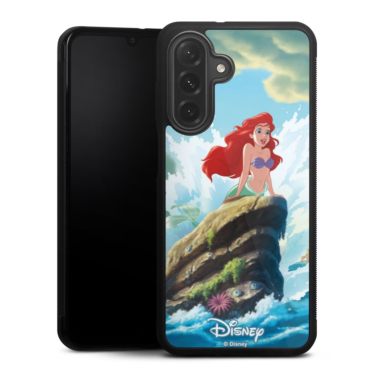We print your design on the back of the glass inlay and then connect it firmly to the silicone case ,so that nothing sticks out and everything looks like it was cast from one piece. In addition, the sturdy glass element is protected from scratches by an additional coating and ensures a slight reflection on the shiny print image.