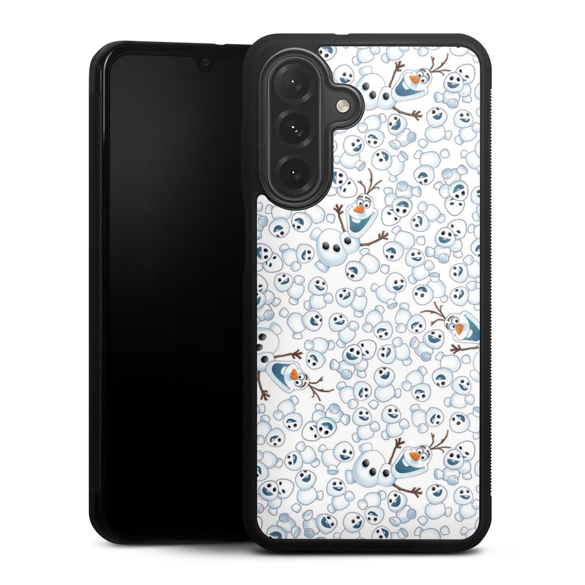 We print your design on the back of the glass inlay and then connect it firmly to the silicone case ,so that nothing sticks out and everything looks like it was cast from one piece. In addition, the sturdy glass element is protected from scratches by an additional coating and ensures a slight reflection on the shiny print image.