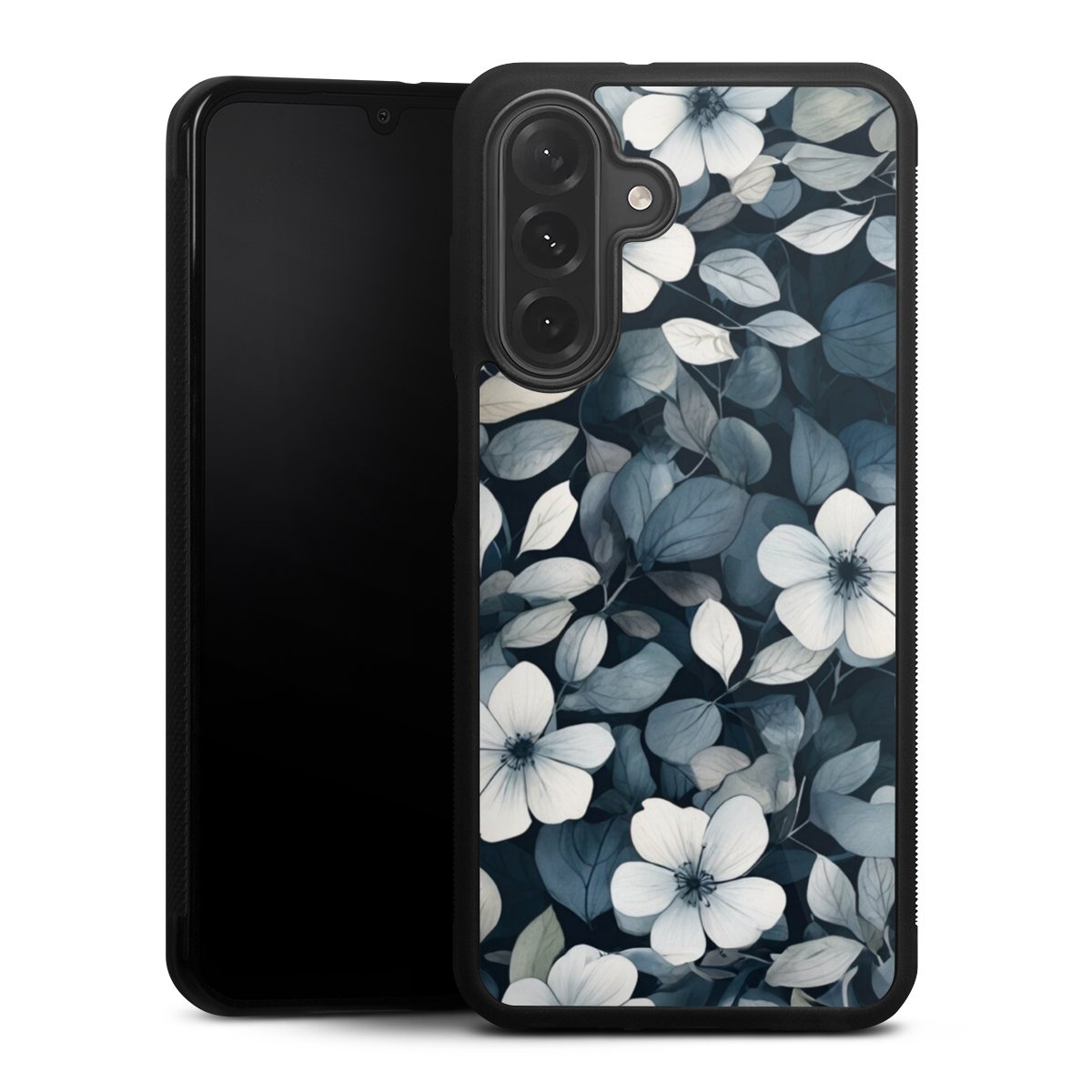 We print your design on the back of the glass inlay and then connect it firmly to the silicone case ,so that nothing sticks out and everything looks like it was cast from one piece. In addition, the sturdy glass element is protected from scratches by an additional coating and ensures a slight reflection on the shiny print image.
