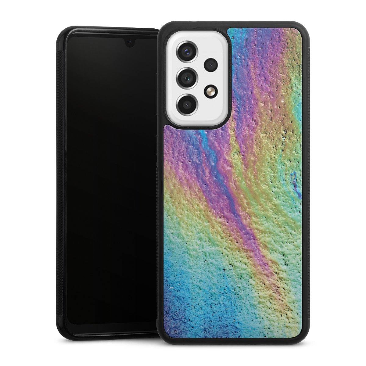 For this phone case, we use the solid direct printing process. The printing area covers the back of the glass plate, the edge of the case remains unprinted. The phone case can only be ordered fully printed. Choose for your design one of our exclusive designs or get creative and create your own design, for example with pictures and overlays. The choice is yours!