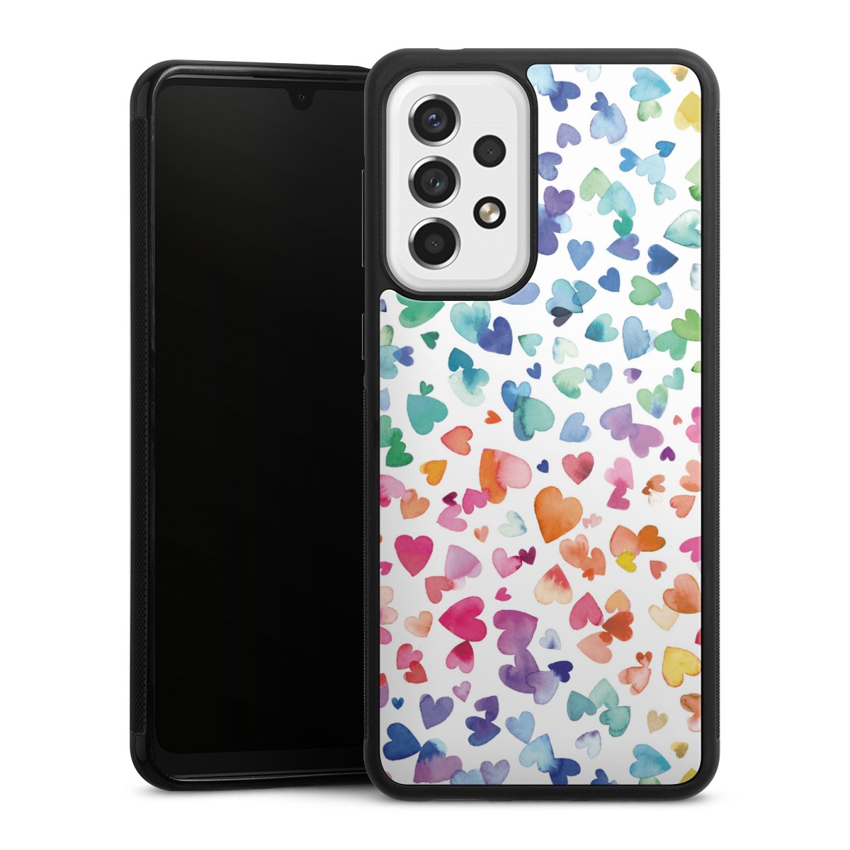 For this phone case, we use the solid direct printing process. The printing area covers the back of the glass plate, the edge of the case remains unprinted. The phone case can only be ordered fully printed. Choose for your design one of our exclusive designs or get creative and create your own design, for example with pictures and overlays. The choice is yours!