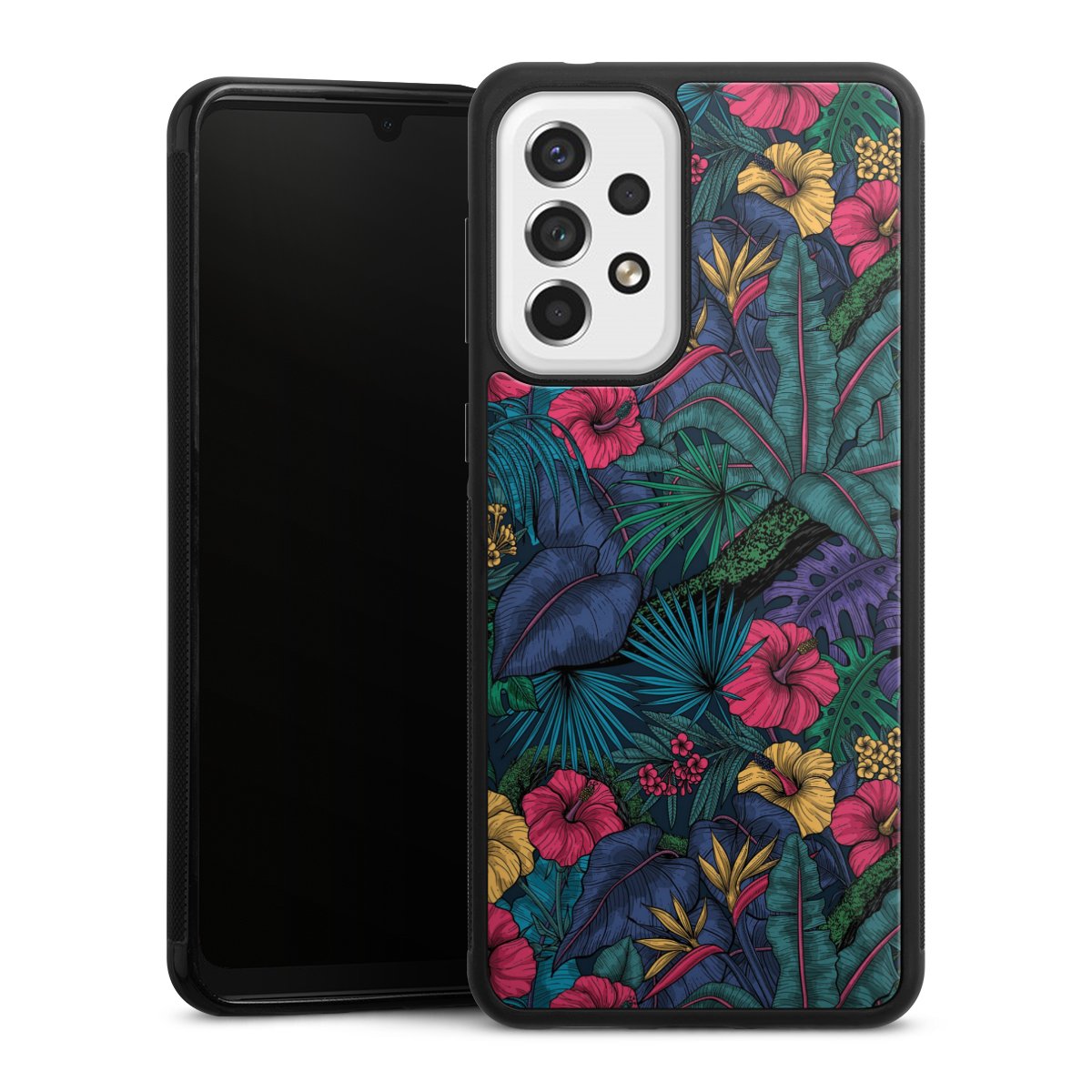For this phone case, we use the solid direct printing process. The printing area covers the back of the glass plate, the edge of the case remains unprinted. The phone case can only be ordered fully printed. Choose for your design one of our exclusive designs or get creative and create your own design, for example with pictures and overlays. The choice is yours!