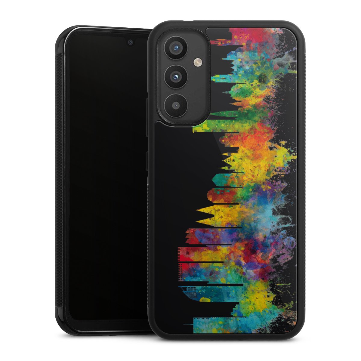 We print your design on the back of the glass inlay and then connect it firmly to the silicone case ,so that nothing sticks out and everything looks like it was cast from one piece. In addition, the sturdy glass element is protected from scratches by an additional coating and ensures a slight reflection on the shiny print image.