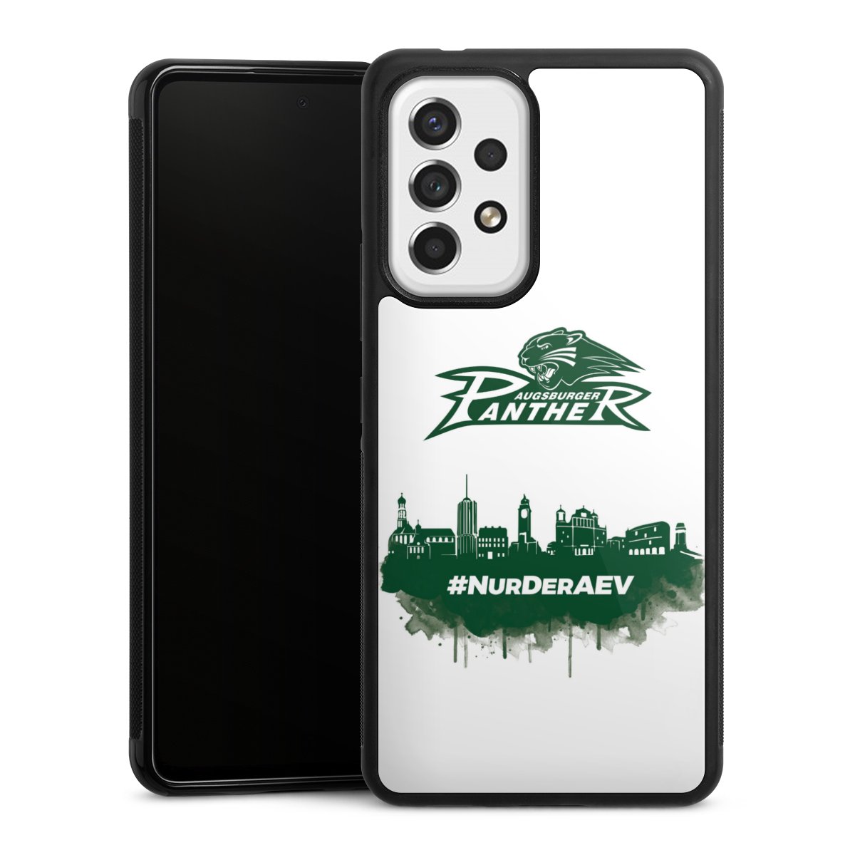 We print your design on the back of the glass inlay and then connect it firmly to the silicone case ,so that nothing sticks out and everything looks like it was cast from one piece. In addition, the sturdy glass element is protected from scratches by an additional coating and ensures a slight reflection on the shiny print image.