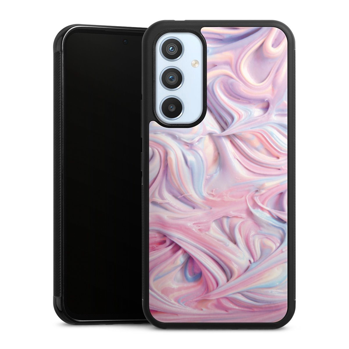 The contrast between the matte black TPU on the sides and the glossy glass surface not only makes the Gallery Case a fest for the eyes, but also a real treat for the hands: The glass gives the phone a pleasantly smooth back and the soft silicone edge provides the necessary grip.