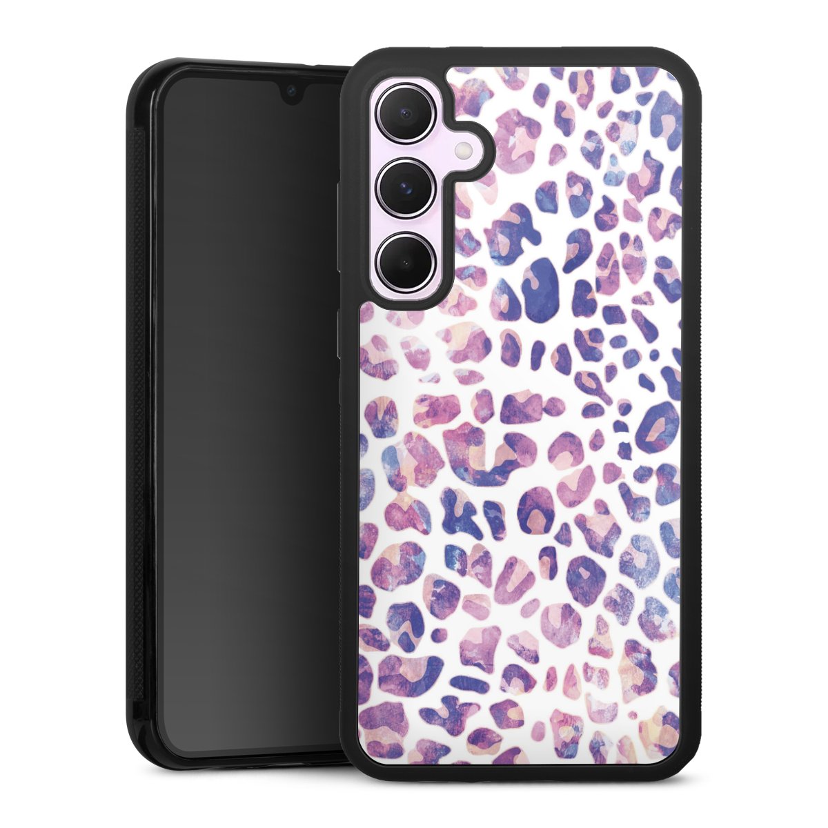We print your design on the back of the glass inlay and then connect it firmly to the silicone case ,so that nothing sticks out and everything looks like it was cast from one piece. In addition, the sturdy glass element is protected from scratches by an additional coating and ensures a slight reflection on the shiny print image.