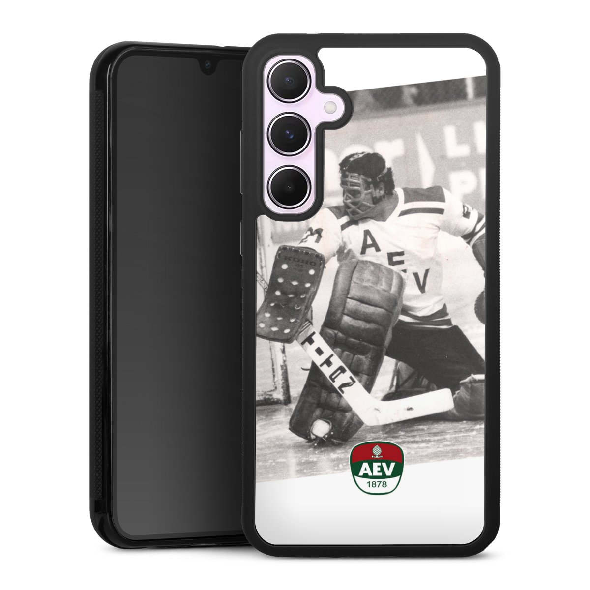 We print your design on the back of the glass inlay and then connect it firmly to the silicone case ,so that nothing sticks out and everything looks like it was cast from one piece. In addition, the sturdy glass element is protected from scratches by an additional coating and ensures a slight reflection on the shiny print image.