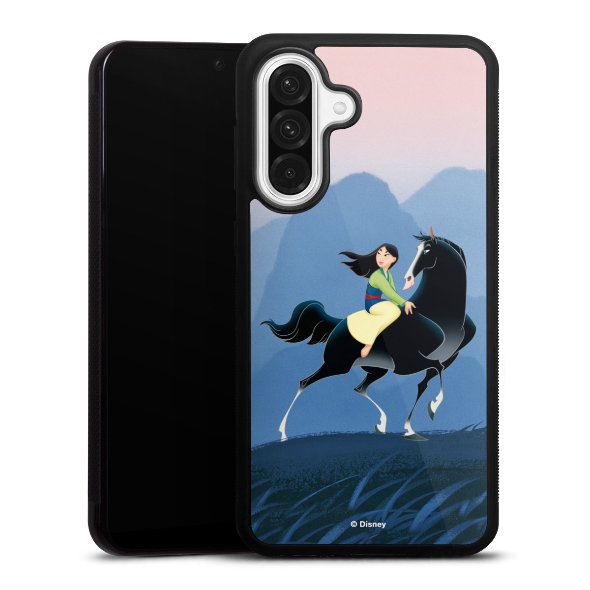 We print your design on the back of the glass inlay and then connect it firmly to the silicone case ,so that nothing sticks out and everything looks like it was cast from one piece. In addition, the sturdy glass element is protected from scratches by an additional coating and ensures a slight reflection on the shiny print image.