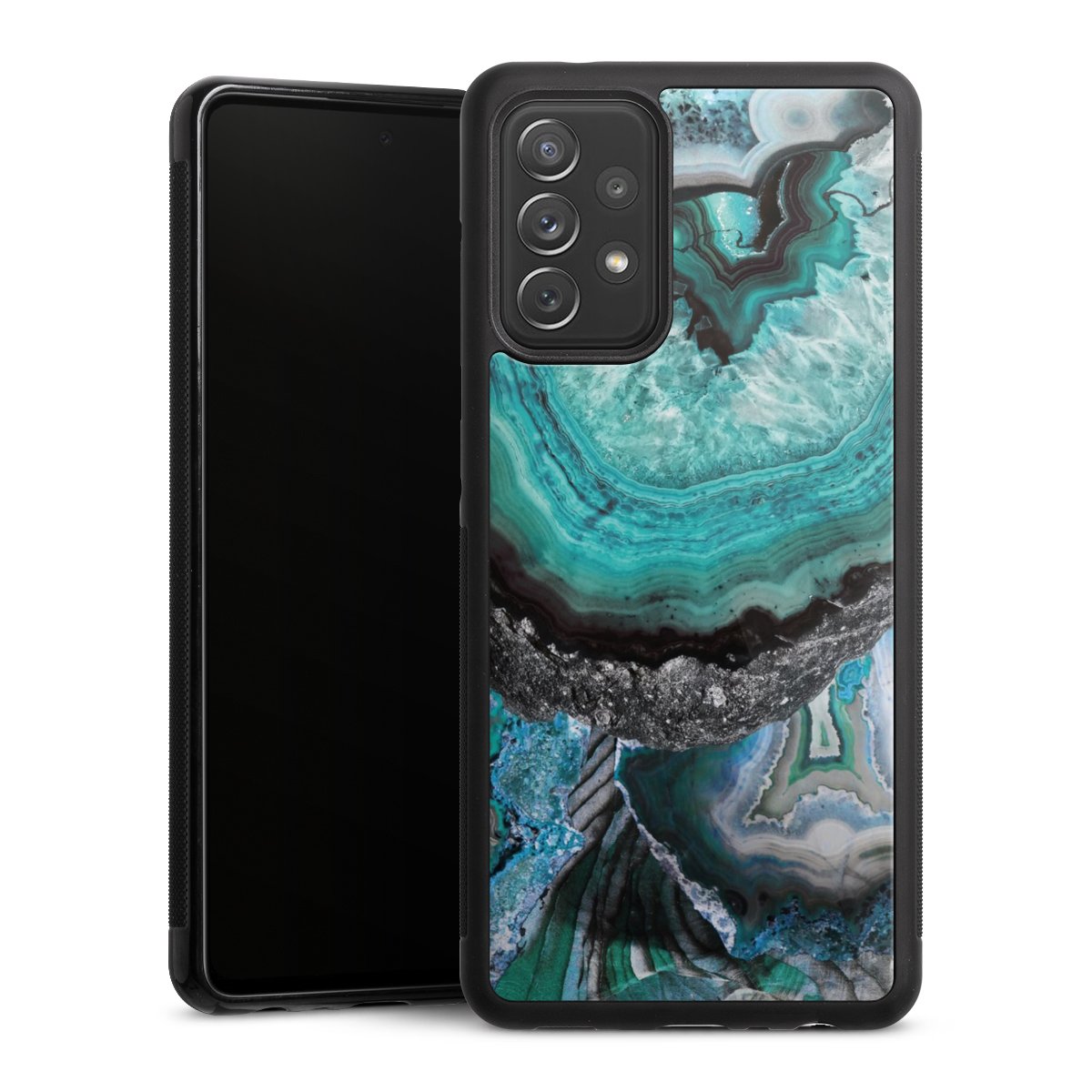 We print your design on the back of the glass inlay and then connect it firmly to the silicone case ,so that nothing sticks out and everything looks like it was cast from one piece. In addition, the sturdy glass element is protected from scratches by an additional coating and ensures a slight reflection on the shiny print image.