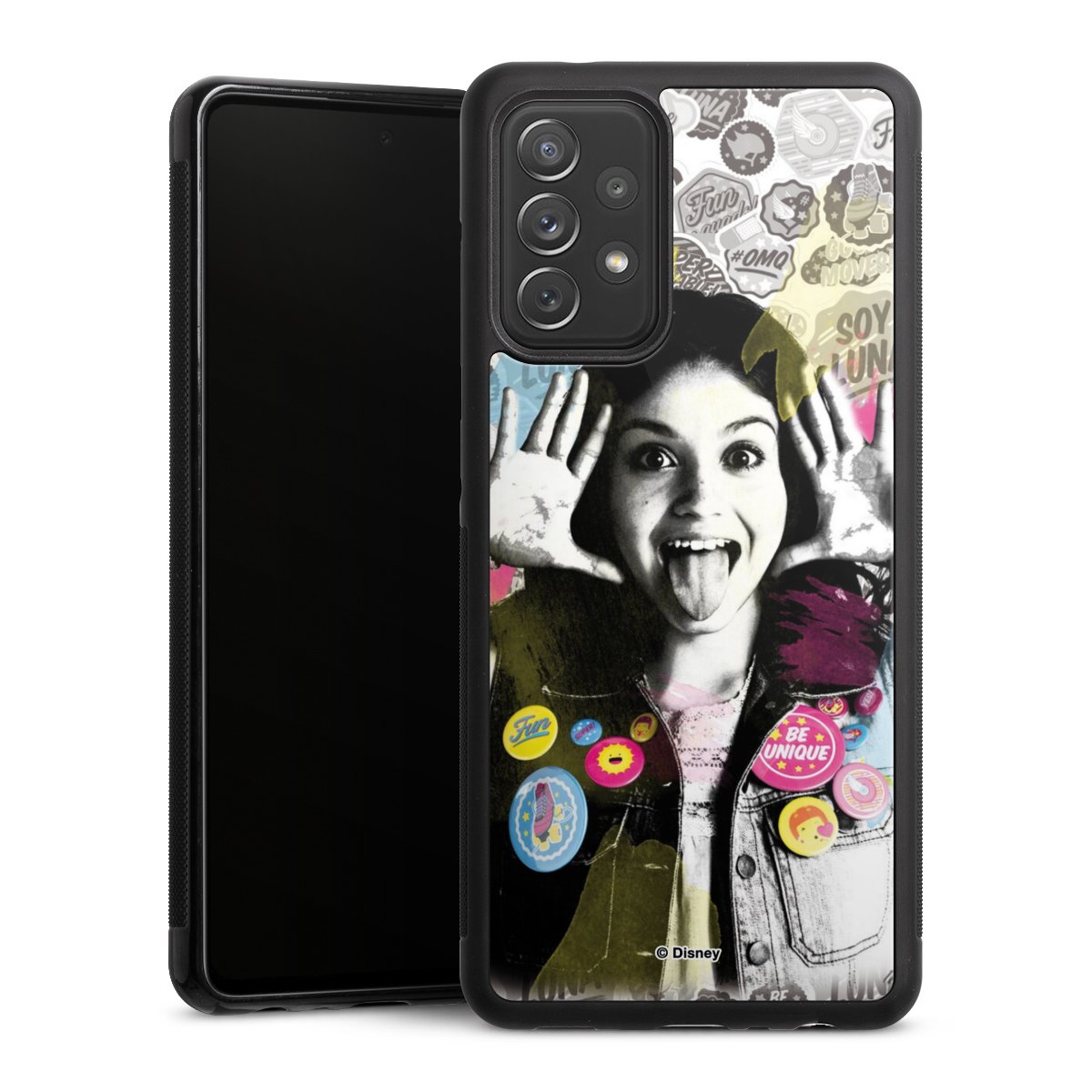 We print your design on the back of the glass inlay and then connect it firmly to the silicone case ,so that nothing sticks out and everything looks like it was cast from one piece. In addition, the sturdy glass element is protected from scratches by an additional coating and ensures a slight reflection on the shiny print image.