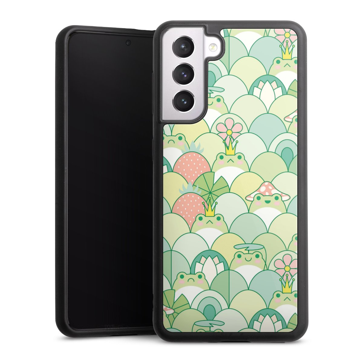 We print your design on the back of the glass inlay and then connect it firmly to the silicone case ,so that nothing sticks out and everything looks like it was cast from one piece. In addition, the sturdy glass element is protected from scratches by an additional coating and ensures a slight reflection on the shiny print image.