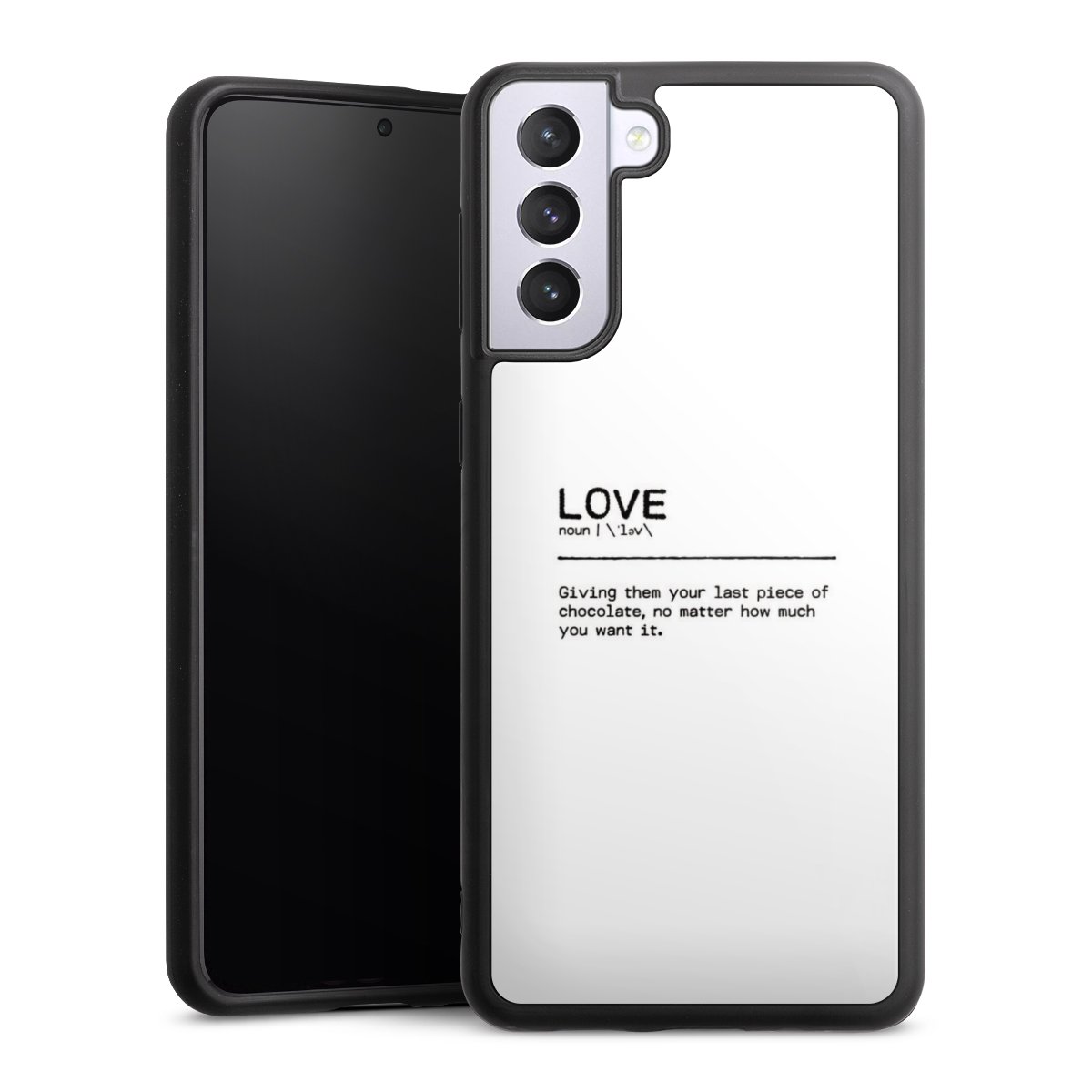 We print your design on the back of the glass inlay and then connect it firmly to the silicone case ,so that nothing sticks out and everything looks like it was cast from one piece. In addition, the sturdy glass element is protected from scratches by an additional coating and ensures a slight reflection on the shiny print image.