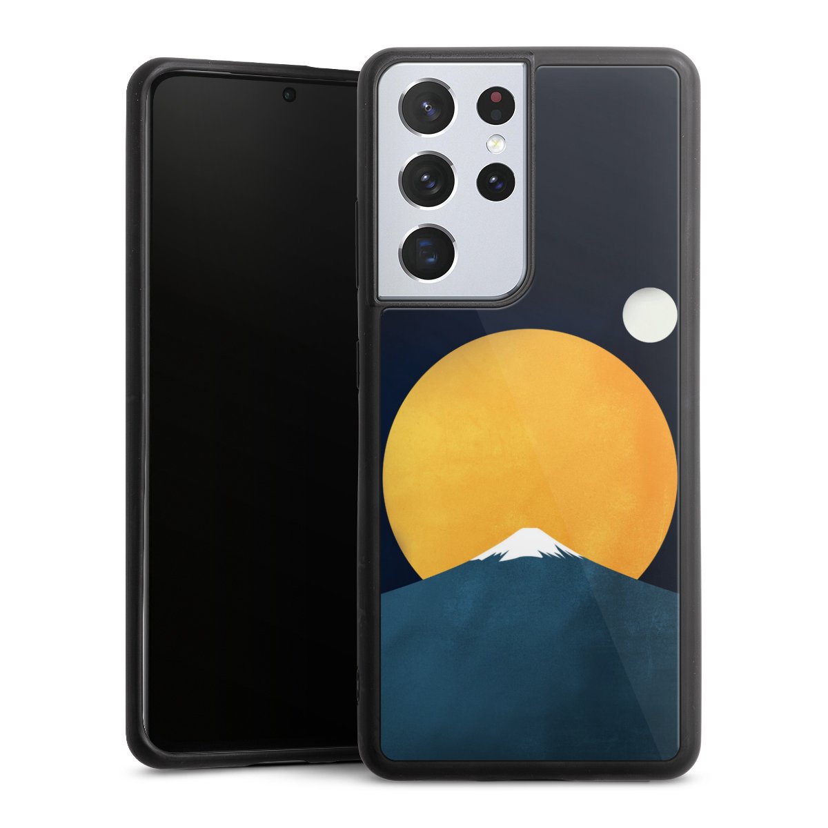 We print your design on the back of the glass inlay and then connect it firmly to the silicone case ,so that nothing sticks out and everything looks like it was cast from one piece. In addition, the sturdy glass element is protected from scratches by an additional coating and ensures a slight reflection on the shiny print image.