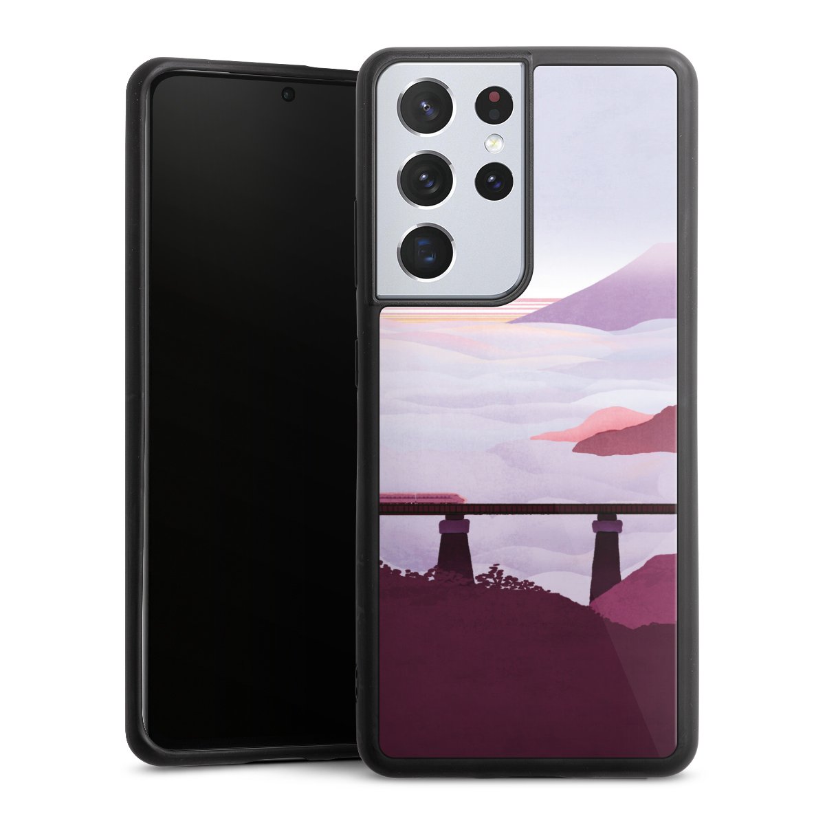 We print your design on the back of the glass inlay and then connect it firmly to the silicone case ,so that nothing sticks out and everything looks like it was cast from one piece. In addition, the sturdy glass element is protected from scratches by an additional coating and ensures a slight reflection on the shiny print image.