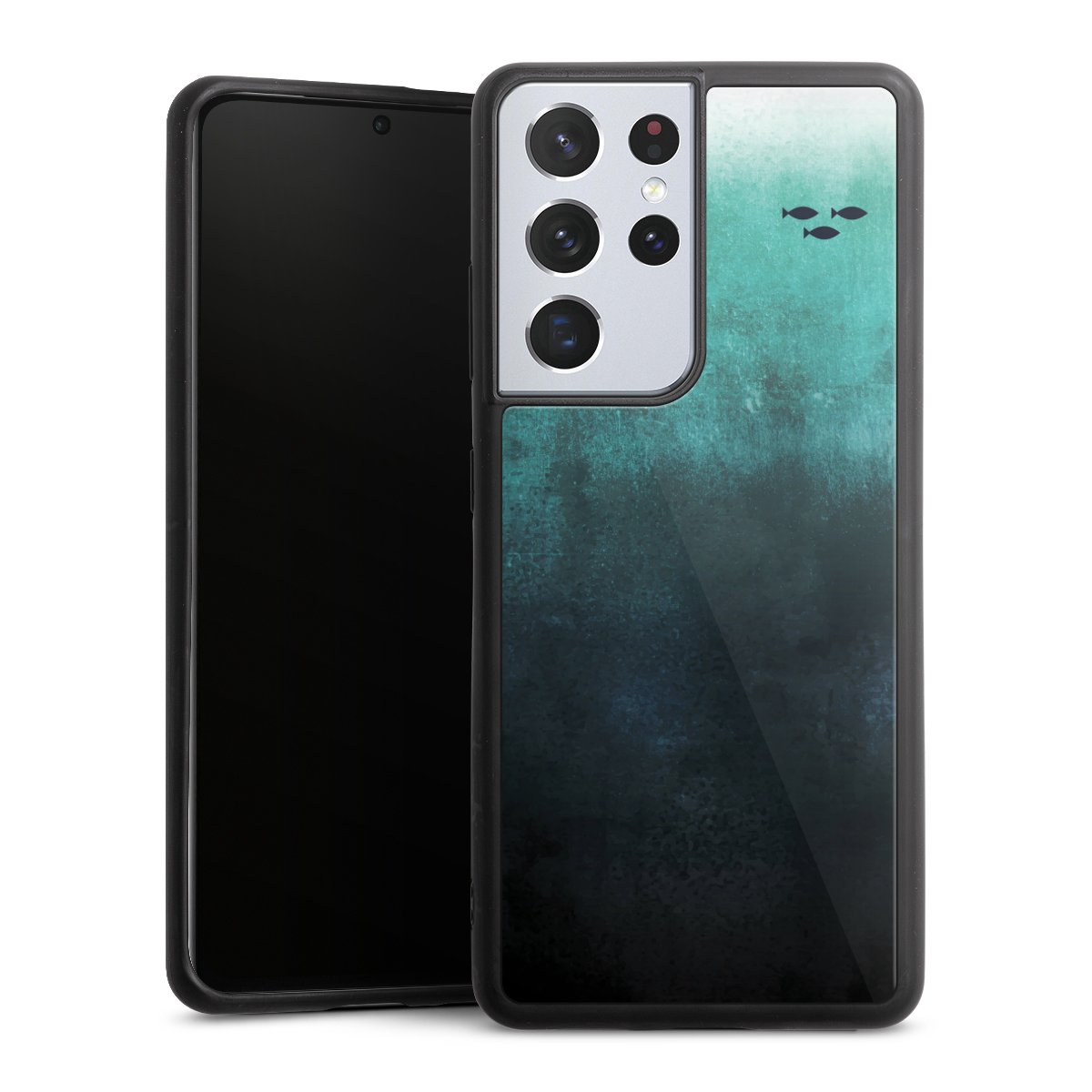 We print your design on the back of the glass inlay and then connect it firmly to the silicone case ,so that nothing sticks out and everything looks like it was cast from one piece. In addition, the sturdy glass element is protected from scratches by an additional coating and ensures a slight reflection on the shiny print image.