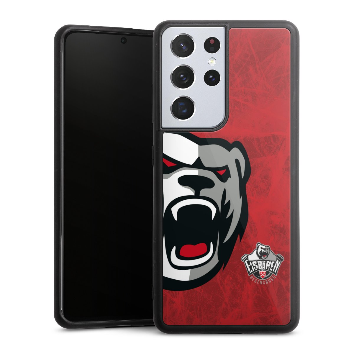 We print your design on the back of the glass inlay and then connect it firmly to the silicone case ,so that nothing sticks out and everything looks like it was cast from one piece. In addition, the sturdy glass element is protected from scratches by an additional coating and ensures a slight reflection on the shiny print image.