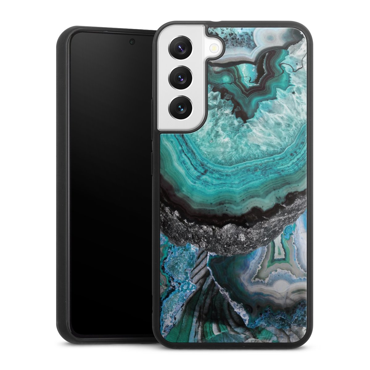 We print your design on the back of the glass inlay and then connect it firmly to the silicone case ,so that nothing sticks out and everything looks like it was cast from one piece. In addition, the sturdy glass element is protected from scratches by an additional coating and ensures a slight reflection on the shiny print image.