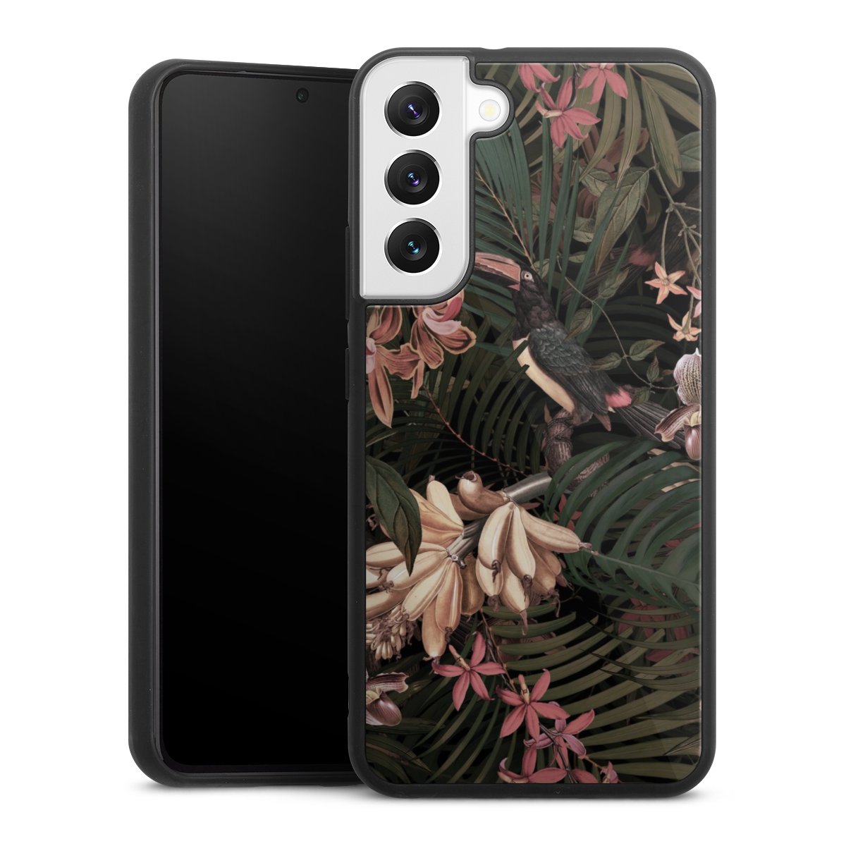 We print your design on the back of the glass inlay and then connect it firmly to the silicone case ,so that nothing sticks out and everything looks like it was cast from one piece. In addition, the sturdy glass element is protected from scratches by an additional coating and ensures a slight reflection on the shiny print image.