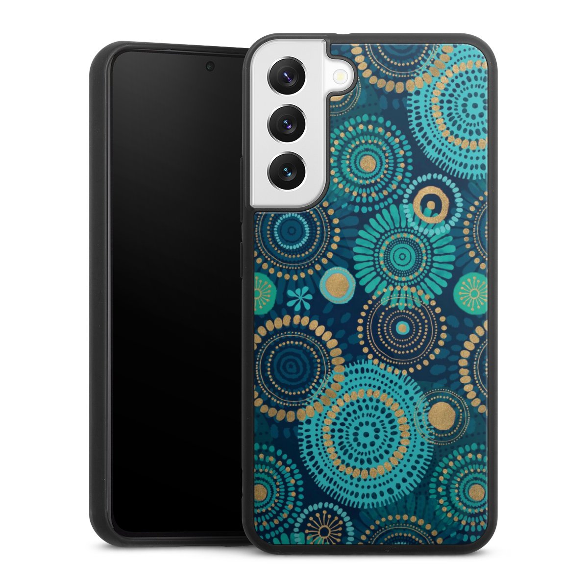 We print your design on the back of the glass inlay and then connect it firmly to the silicone case ,so that nothing sticks out and everything looks like it was cast from one piece. In addition, the sturdy glass element is protected from scratches by an additional coating and ensures a slight reflection on the shiny print image.