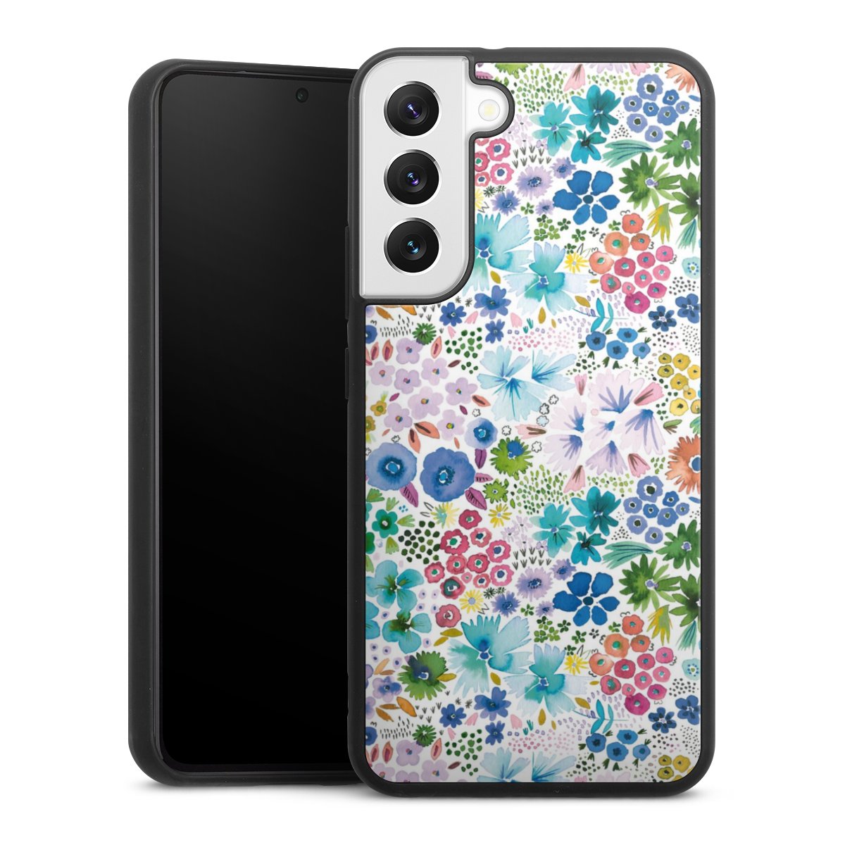 We print your design on the back of the glass inlay and then connect it firmly to the silicone case ,so that nothing sticks out and everything looks like it was cast from one piece. In addition, the sturdy glass element is protected from scratches by an additional coating and ensures a slight reflection on the shiny print image.