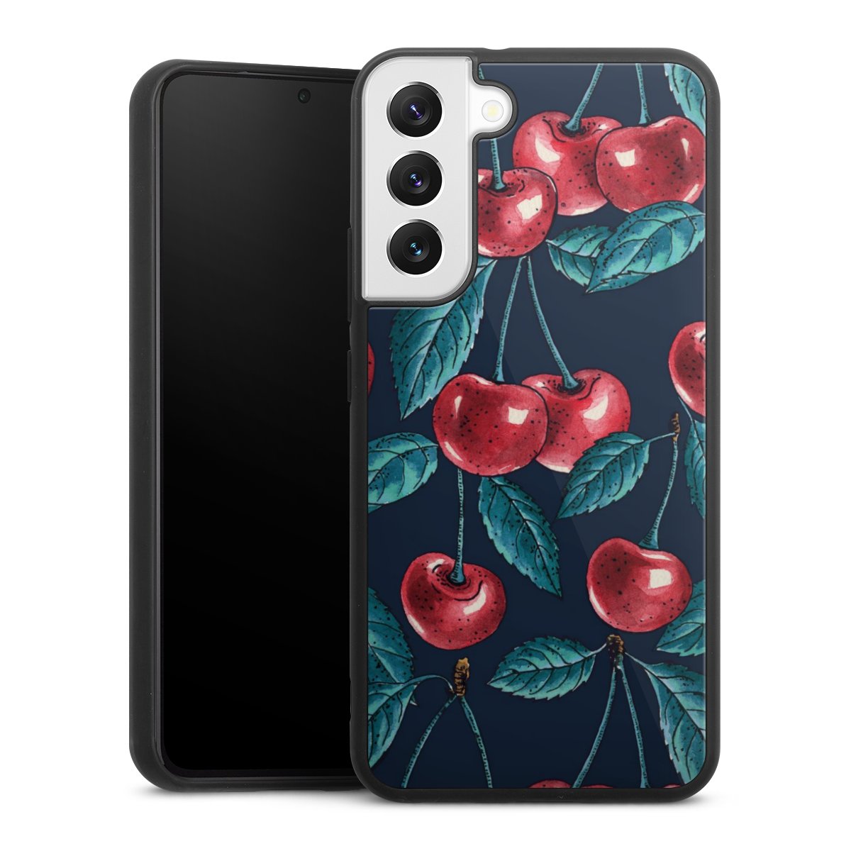 We print your design on the back of the glass inlay and then connect it firmly to the silicone case ,so that nothing sticks out and everything looks like it was cast from one piece. In addition, the sturdy glass element is protected from scratches by an additional coating and ensures a slight reflection on the shiny print image.