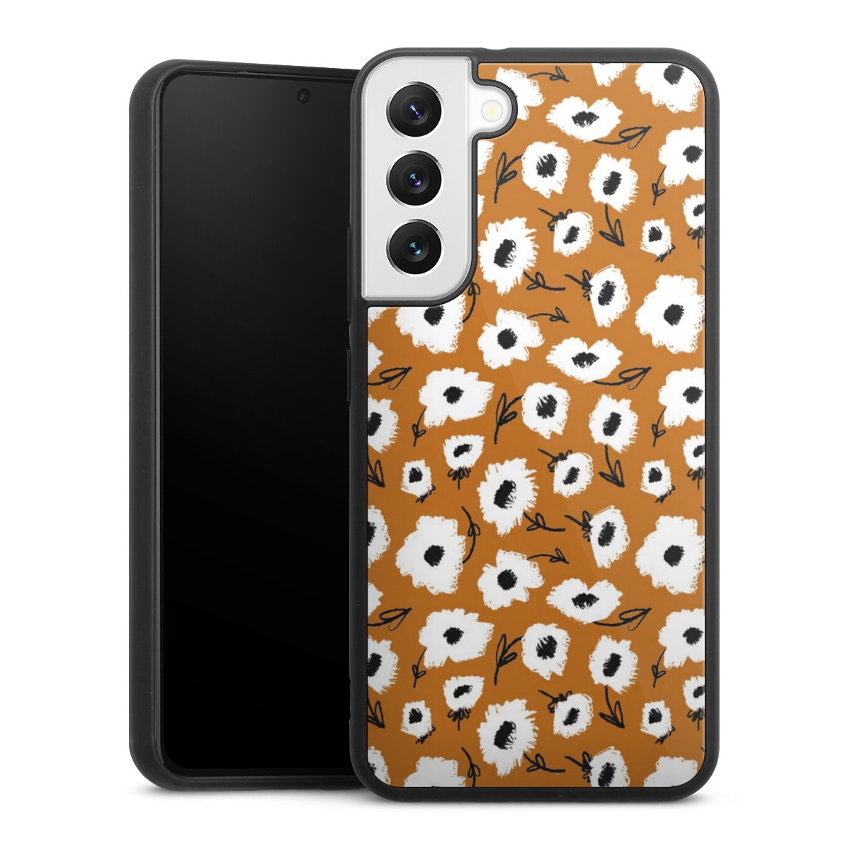 We print your design on the back of the glass inlay and then connect it firmly to the silicone case ,so that nothing sticks out and everything looks like it was cast from one piece. In addition, the sturdy glass element is protected from scratches by an additional coating and ensures a slight reflection on the shiny print image.