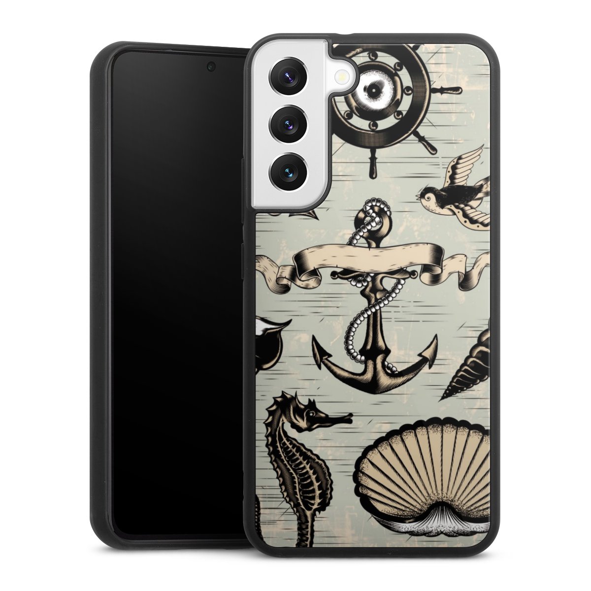 We print your design on the back of the glass inlay and then connect it firmly to the silicone case ,so that nothing sticks out and everything looks like it was cast from one piece. In addition, the sturdy glass element is protected from scratches by an additional coating and ensures a slight reflection on the shiny print image.