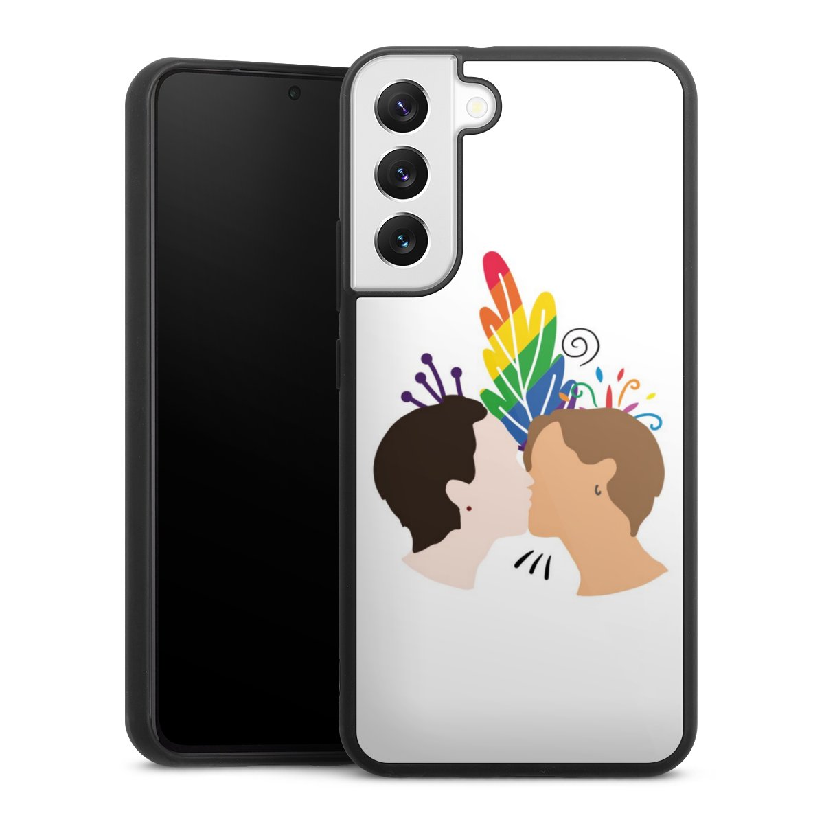 We print your design on the back of the glass inlay and then connect it firmly to the silicone case ,so that nothing sticks out and everything looks like it was cast from one piece. In addition, the sturdy glass element is protected from scratches by an additional coating and ensures a slight reflection on the shiny print image.