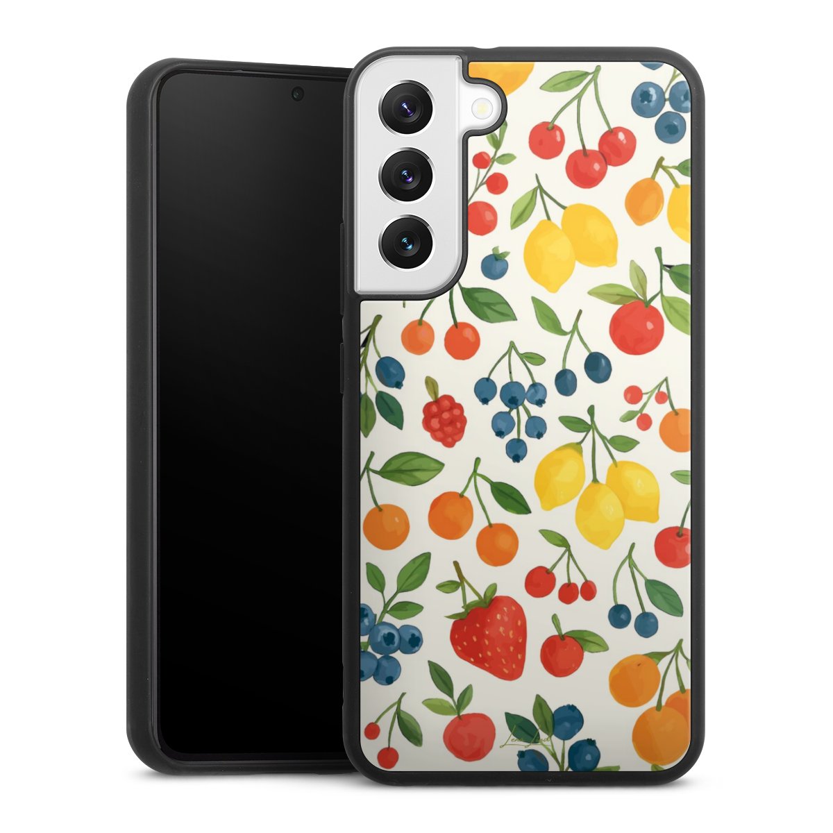 We print your design on the back of the glass inlay and then connect it firmly to the silicone case ,so that nothing sticks out and everything looks like it was cast from one piece. In addition, the sturdy glass element is protected from scratches by an additional coating and ensures a slight reflection on the shiny print image.