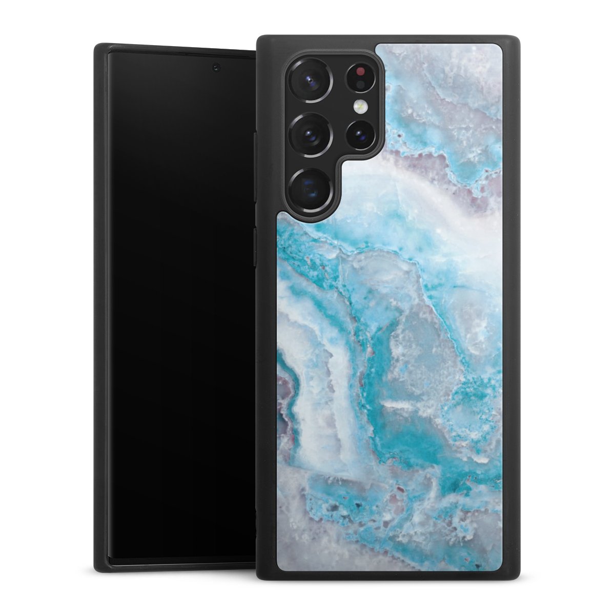 We print your design on the back of the glass inlay and then connect it firmly to the silicone case ,so that nothing sticks out and everything looks like it was cast from one piece. In addition, the sturdy glass element is protected from scratches by an additional coating and ensures a slight reflection on the shiny print image.