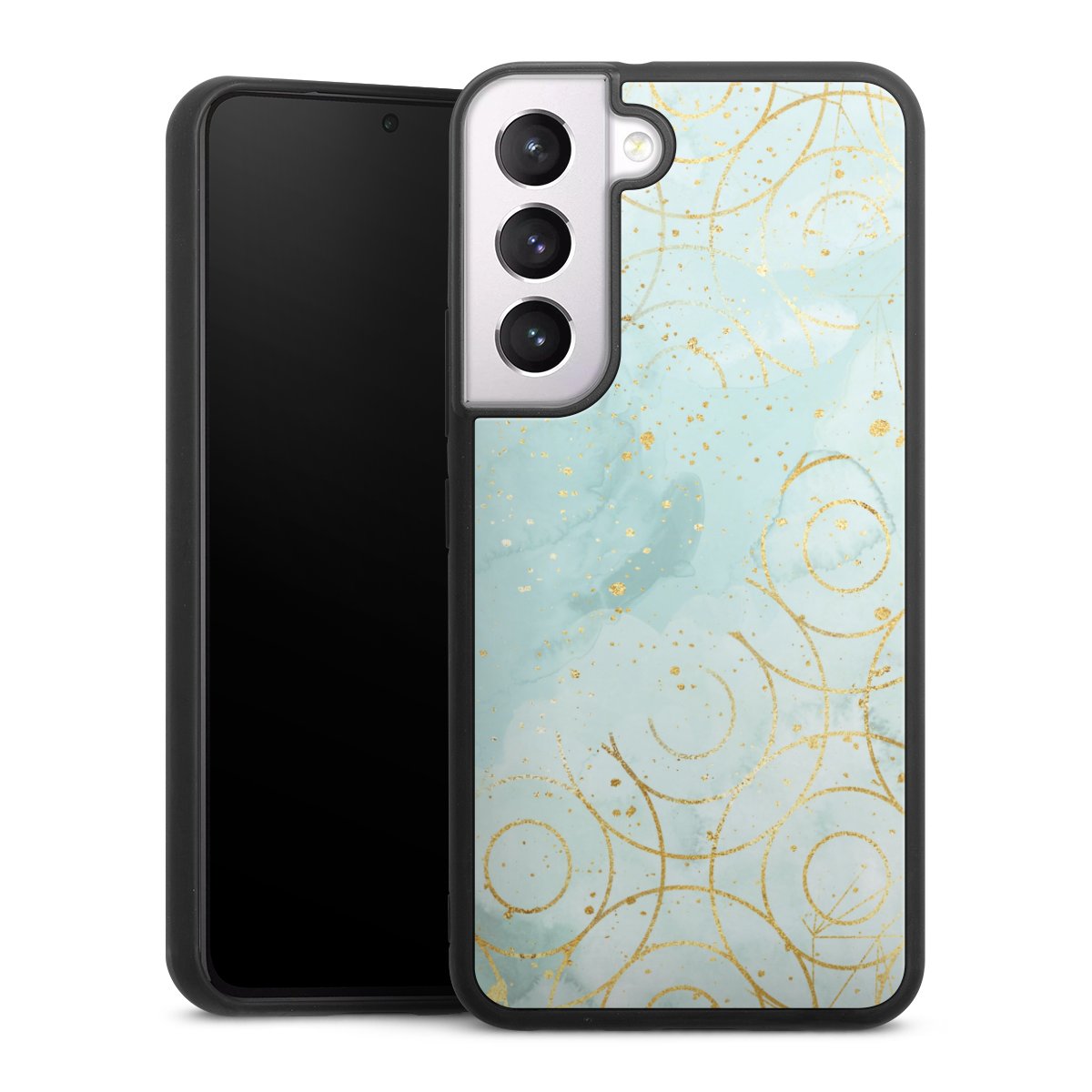 We print your design on the back of the glass inlay and then connect it firmly to the silicone case ,so that nothing sticks out and everything looks like it was cast from one piece. In addition, the sturdy glass element is protected from scratches by an additional coating and ensures a slight reflection on the shiny print image.