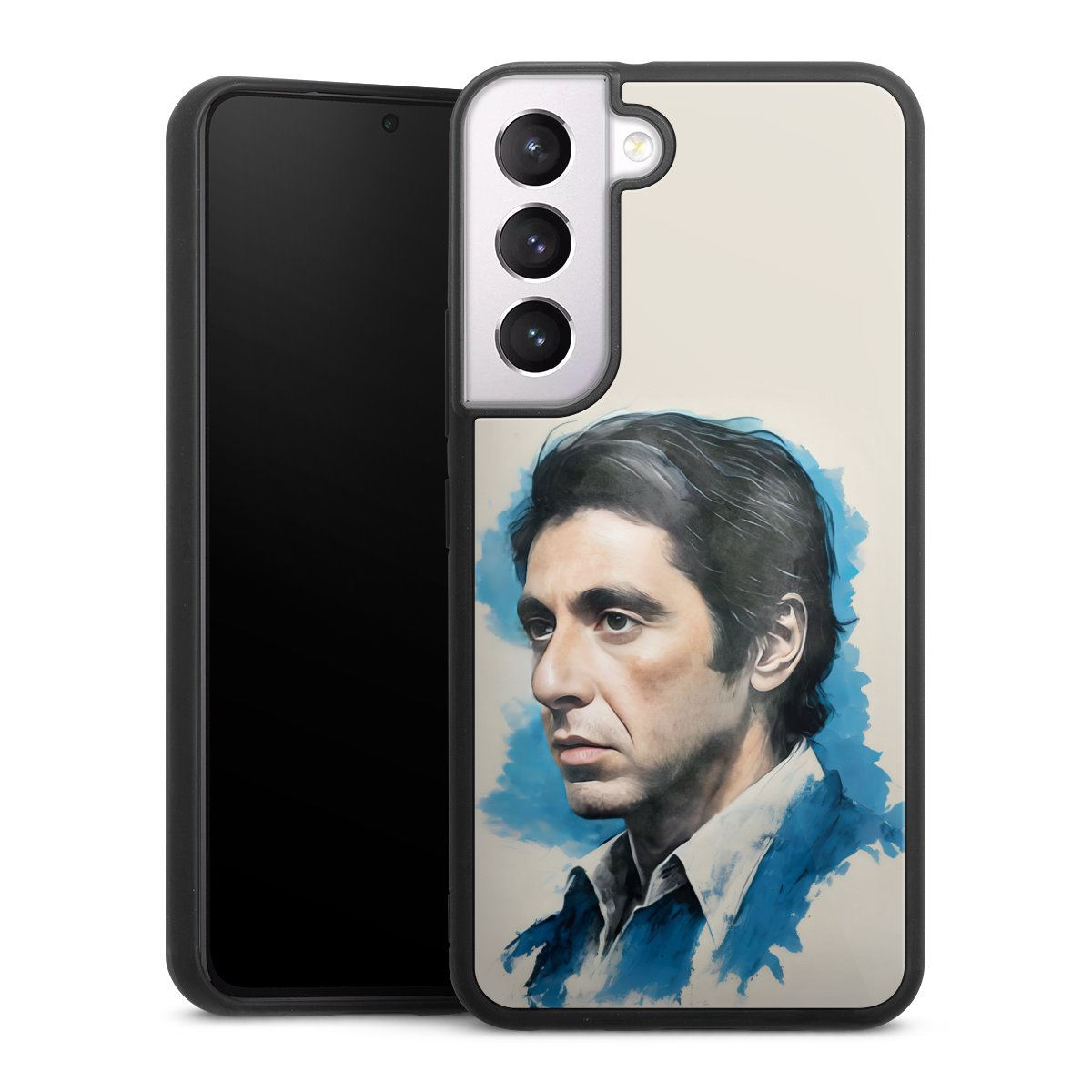 We print your design on the back of the glass inlay and then connect it firmly to the silicone case ,so that nothing sticks out and everything looks like it was cast from one piece. In addition, the sturdy glass element is protected from scratches by an additional coating and ensures a slight reflection on the shiny print image.