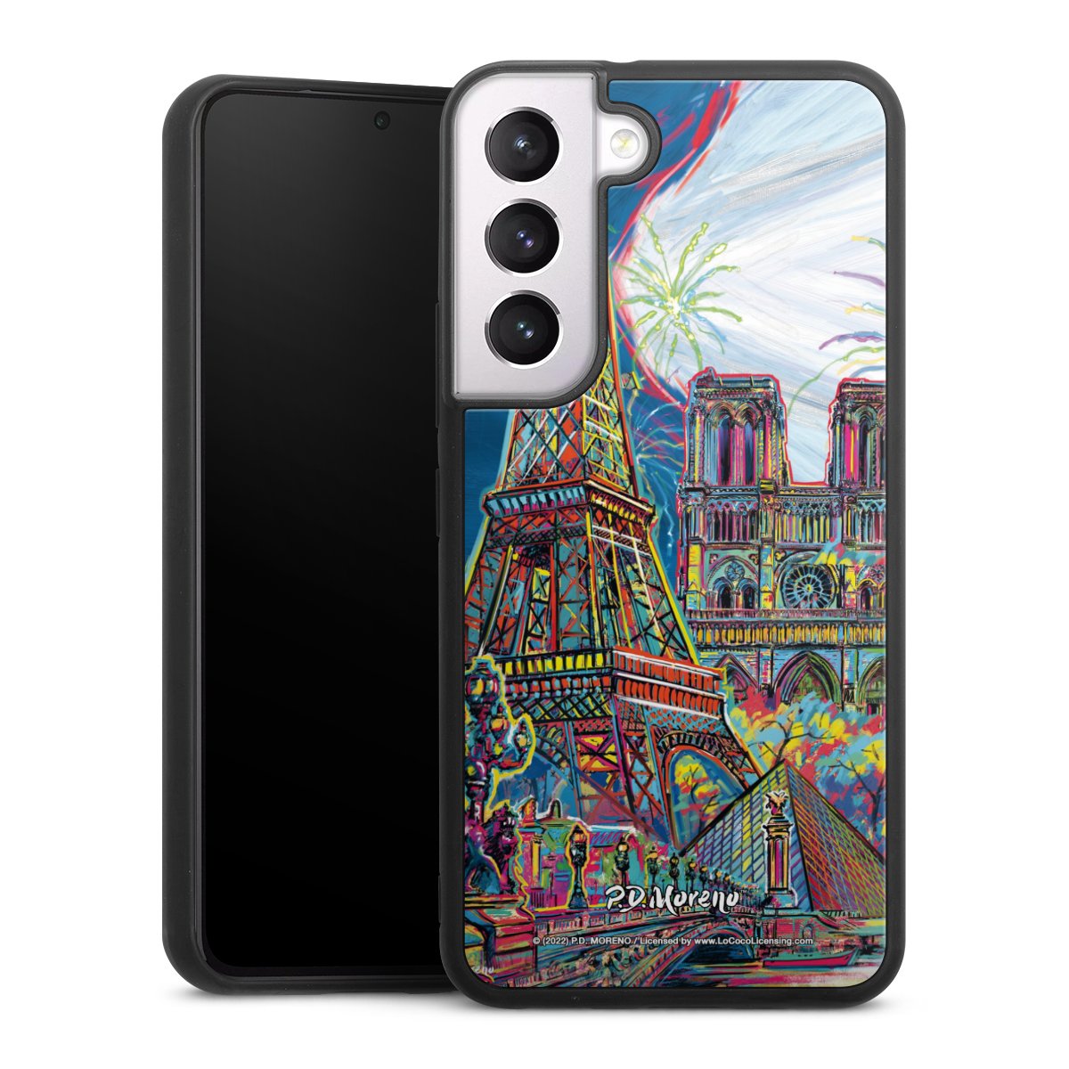 We print your design on the back of the glass inlay and then connect it firmly to the silicone case ,so that nothing sticks out and everything looks like it was cast from one piece. In addition, the sturdy glass element is protected from scratches by an additional coating and ensures a slight reflection on the shiny print image.