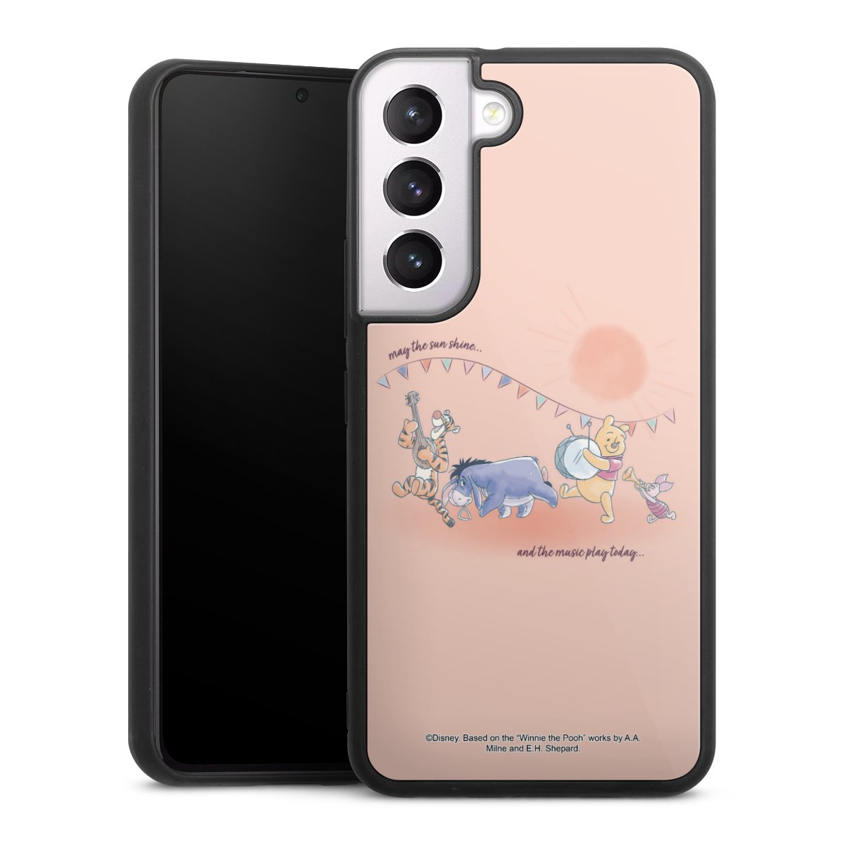 We print your design on the back of the glass inlay and then connect it firmly to the silicone case ,so that nothing sticks out and everything looks like it was cast from one piece. In addition, the sturdy glass element is protected from scratches by an additional coating and ensures a slight reflection on the shiny print image.