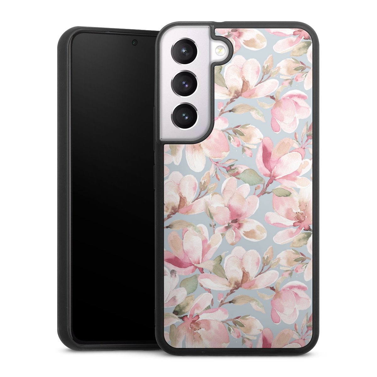 We print your design on the back of the glass inlay and then connect it firmly to the silicone case ,so that nothing sticks out and everything looks like it was cast from one piece. In addition, the sturdy glass element is protected from scratches by an additional coating and ensures a slight reflection on the shiny print image.