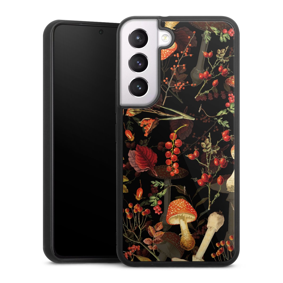 We print your design on the back of the glass inlay and then connect it firmly to the silicone case ,so that nothing sticks out and everything looks like it was cast from one piece. In addition, the sturdy glass element is protected from scratches by an additional coating and ensures a slight reflection on the shiny print image.