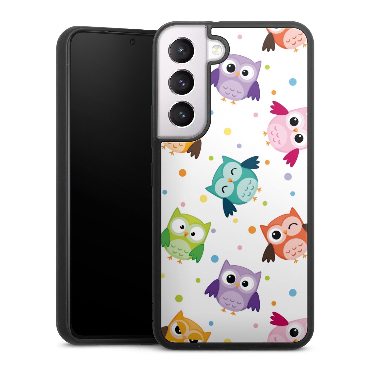 We print your design on the back of the glass inlay and then connect it firmly to the silicone case ,so that nothing sticks out and everything looks like it was cast from one piece. In addition, the sturdy glass element is protected from scratches by an additional coating and ensures a slight reflection on the shiny print image.