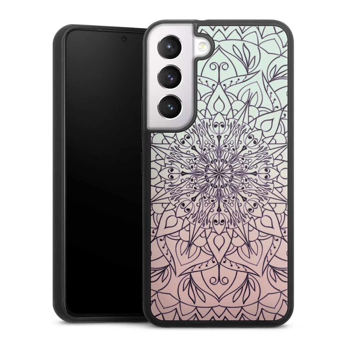 We print your design on the back of the glass inlay and then connect it firmly to the silicone case ,so that nothing sticks out and everything looks like it was cast from one piece. In addition, the sturdy glass element is protected from scratches by an additional coating and ensures a slight reflection on the shiny print image.